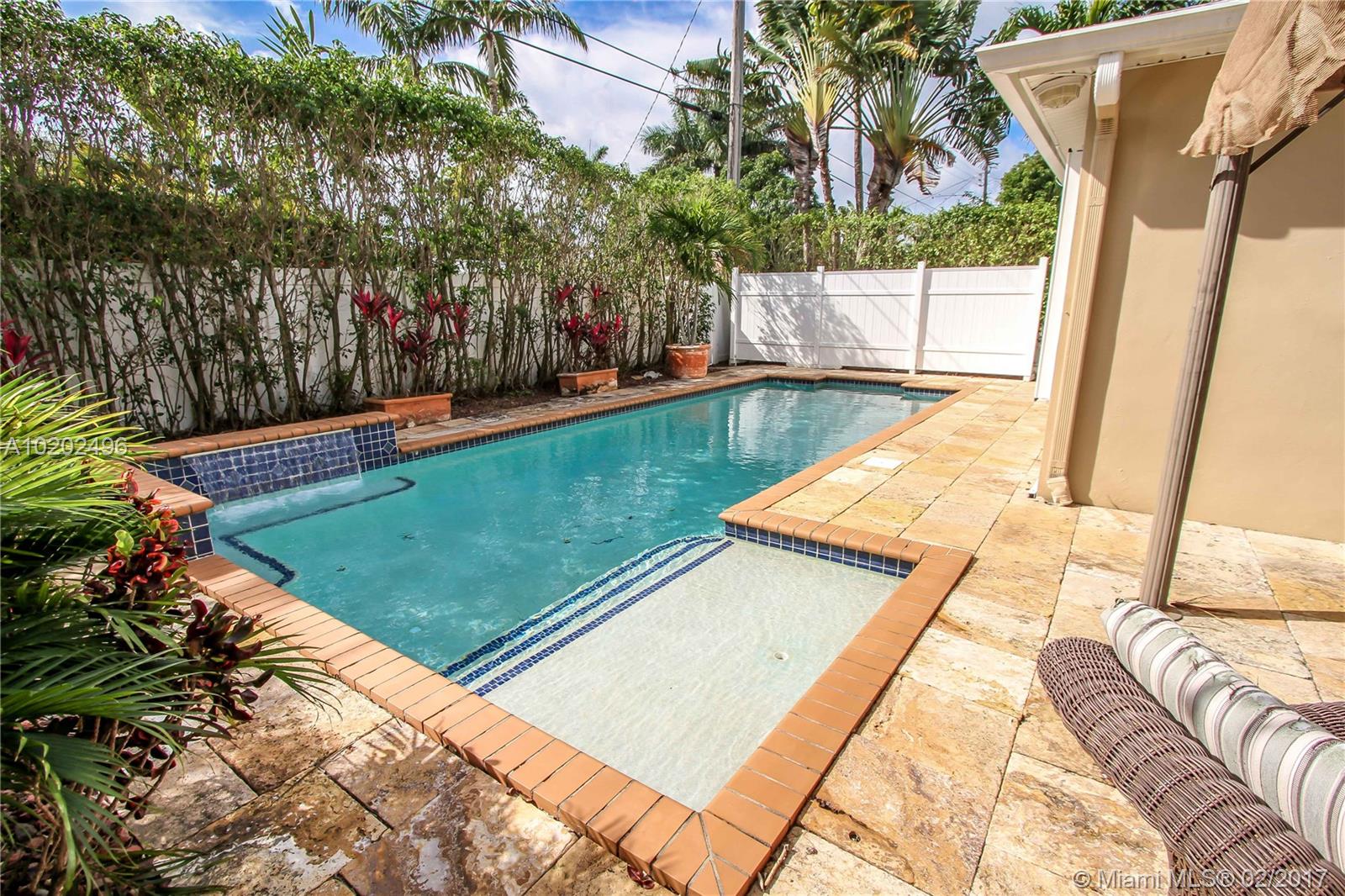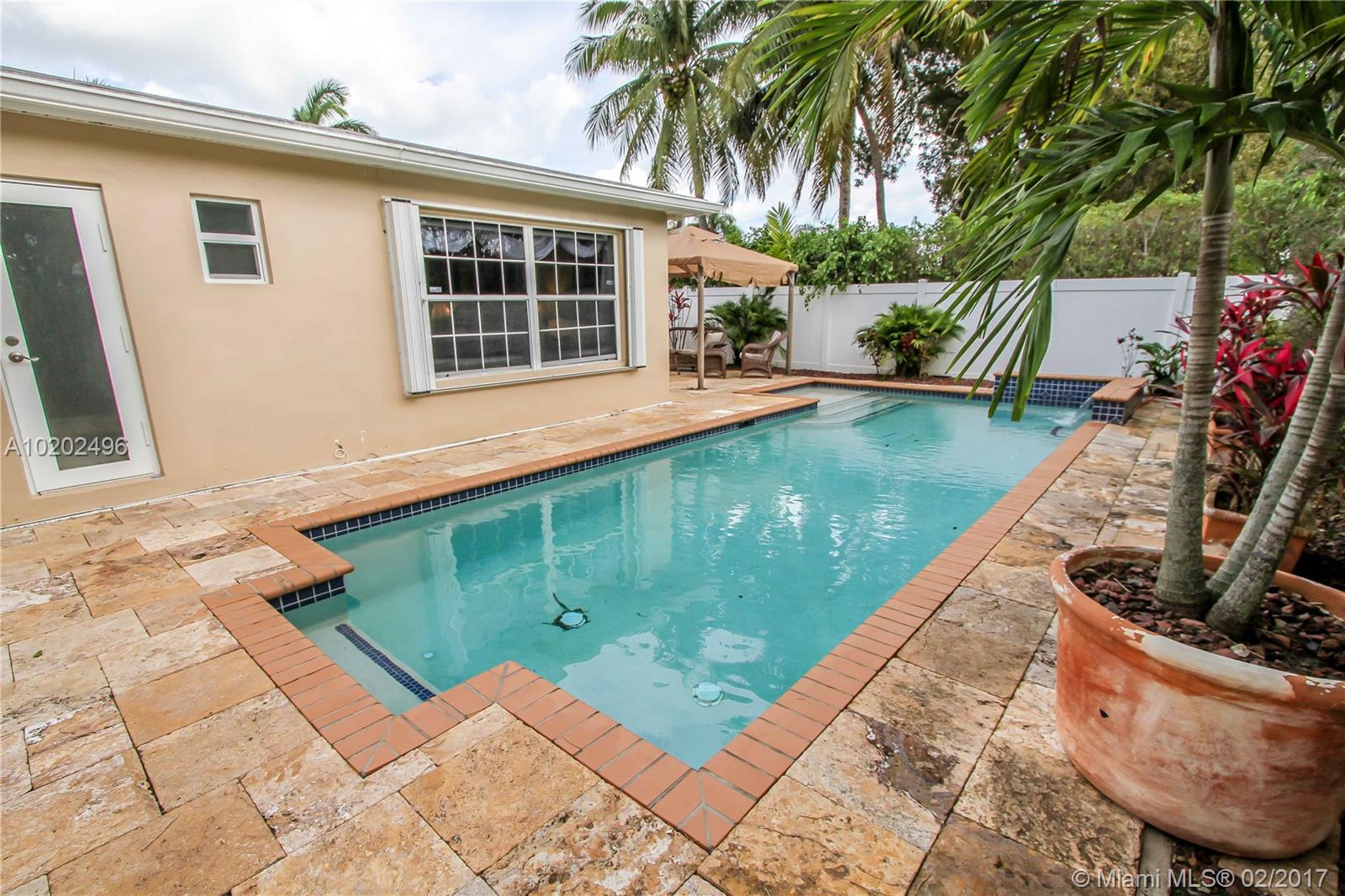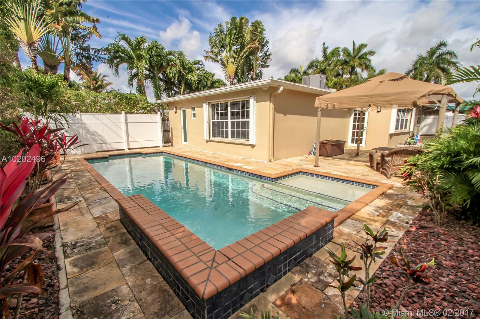 Great Lifestyle in the Heart Of Hollywood Lakes. Bright and Spacious 4 BR, 3 BA, Saltwater heated Pool with Waterfall, Marble stone around the pool. Family room, split floor plan, Tile floors throughout. Open Kitchen with granite countertops, lots of counter cabinet space and Stainless Steel appliances. Updated Master Bath with Double sink, His/Her Commode, glass door shower and walk-in closet. Laundry room. Large driveway with Covered Carport. Perfect for entertaining & Short distance to beach.