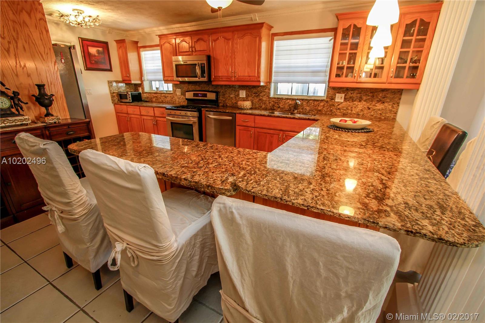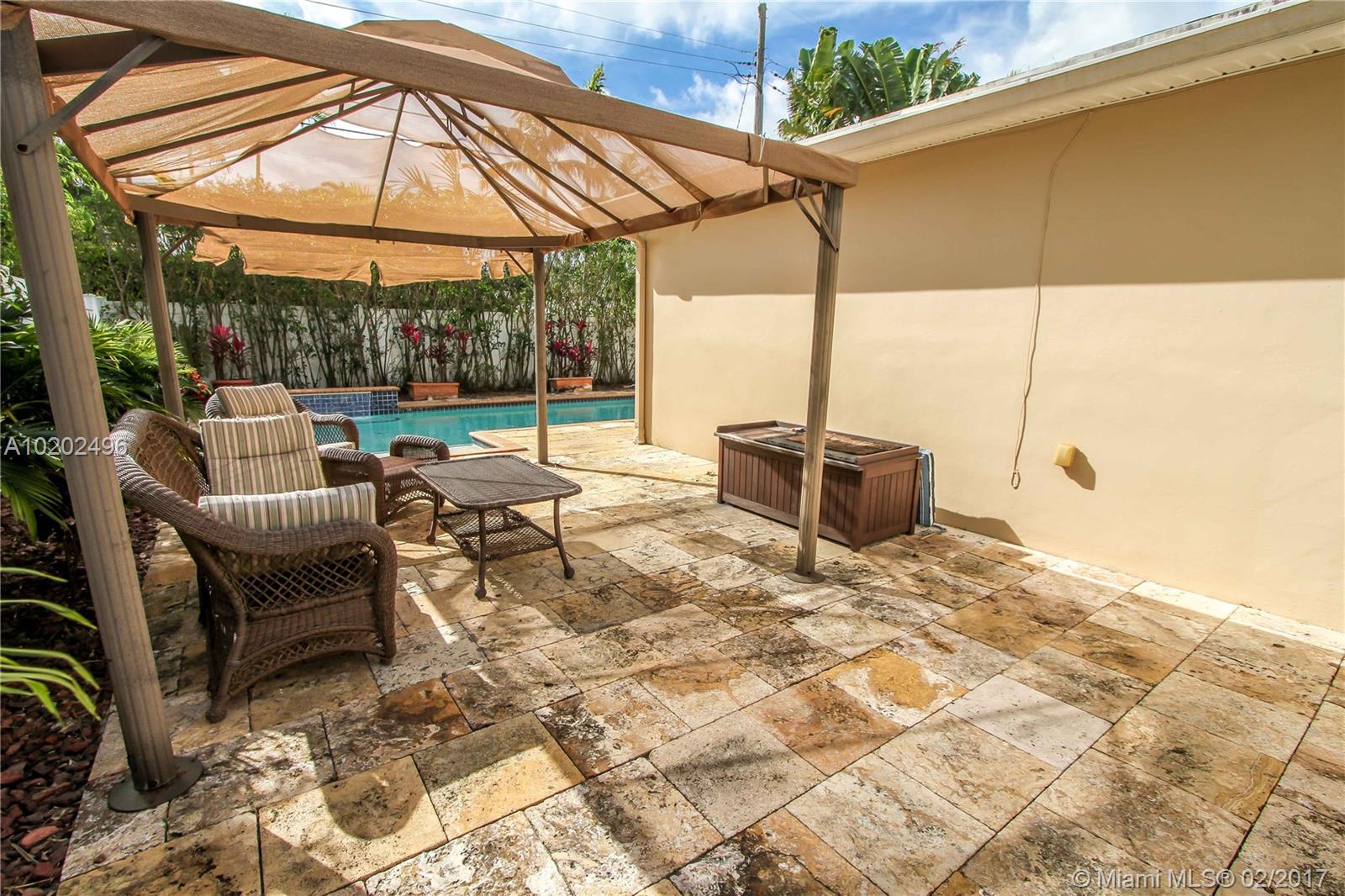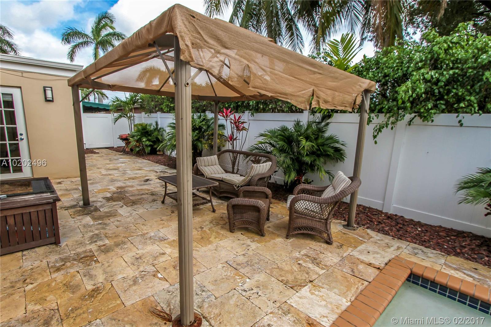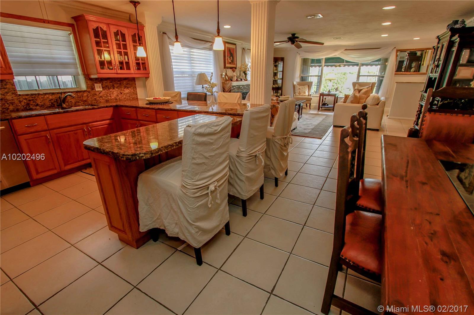 Great Lifestyle in the Heart Of Hollywood Lakes. Bright and Spacious 4 BR, 3 BA, Saltwater heated Pool with Waterfall, Marble stone around the pool. Family room, split floor plan, Tile floors throughout. Open Kitchen with granite countertops, lots of counter cabinet space and Stainless Steel appliances. Updated Master Bath with Double sink, His/Her Commode, glass door shower and walk-in closet. Laundry room. Large driveway with Covered Carport. Perfect for entertaining & Short distance to beach.