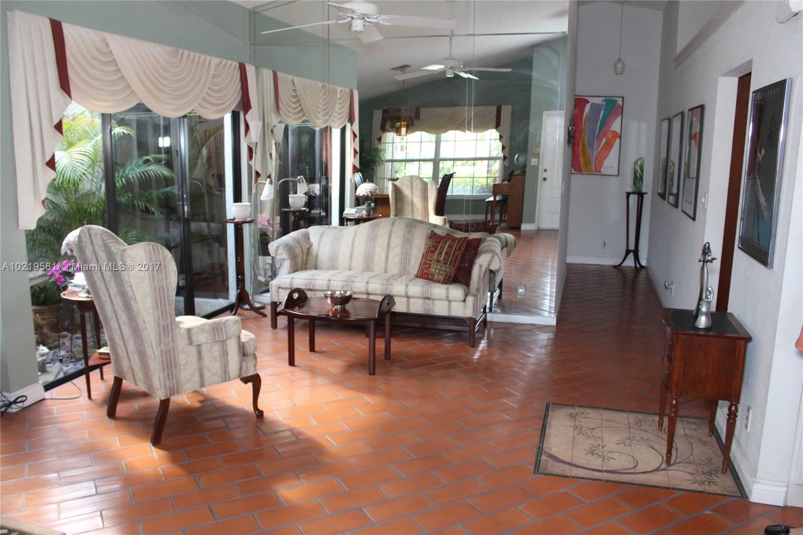 Tiera Vista in Rock Creek what a great location. Light and Bright one of a kind home on a cul de sac on the lake. This unique home opens to a living, dining room atrium combination which gives you the feeling of being surrounded by nature. This home features a large remodeled open kitchen with views of the lake from the kitchen and family room. Tiled throughout with new pavers both in the driveway and back patio. Cooper City A rated Schools. This home includes a 1 year home warranty