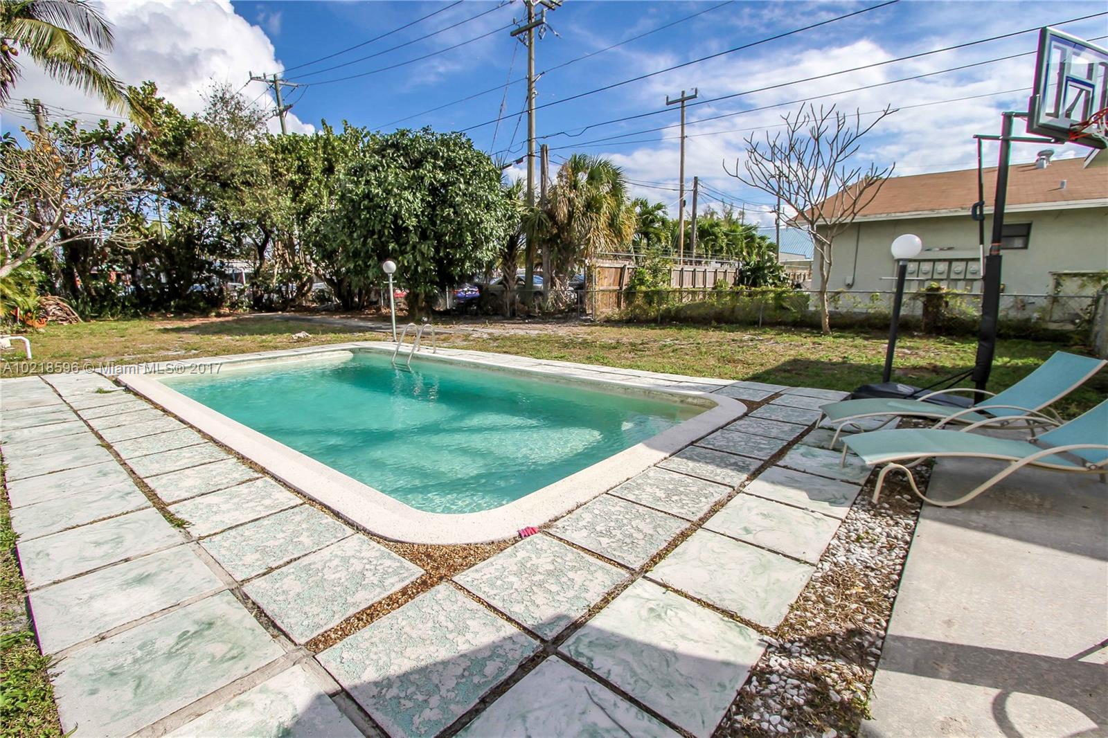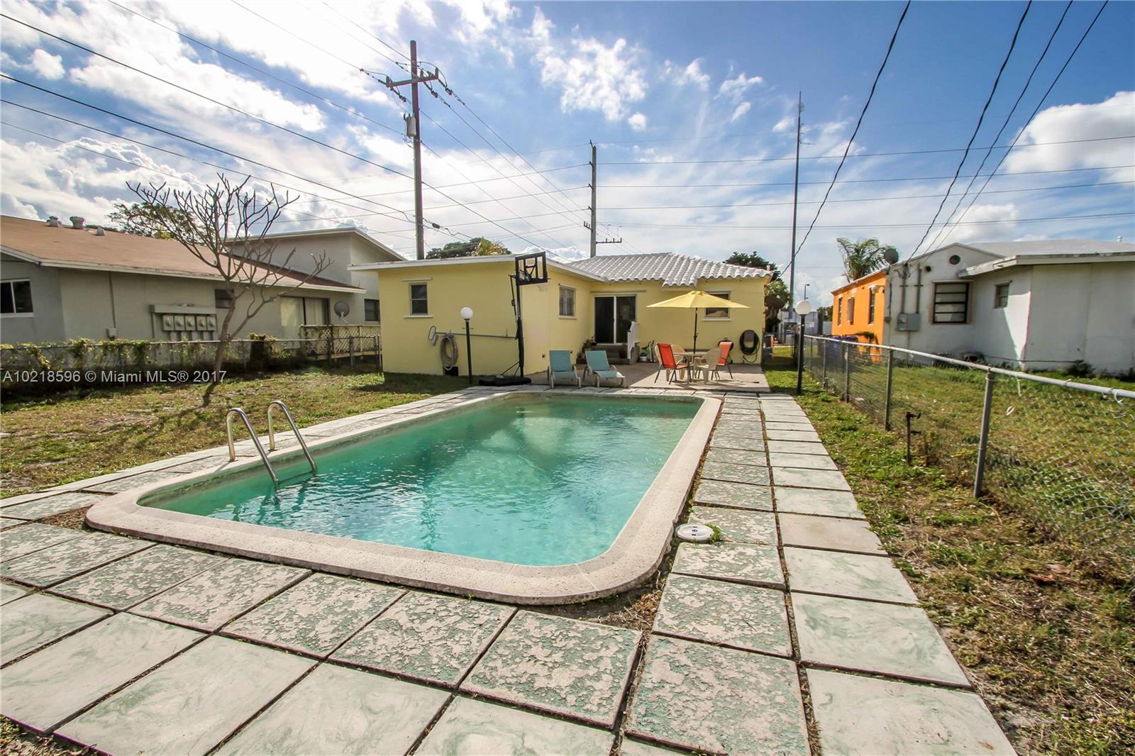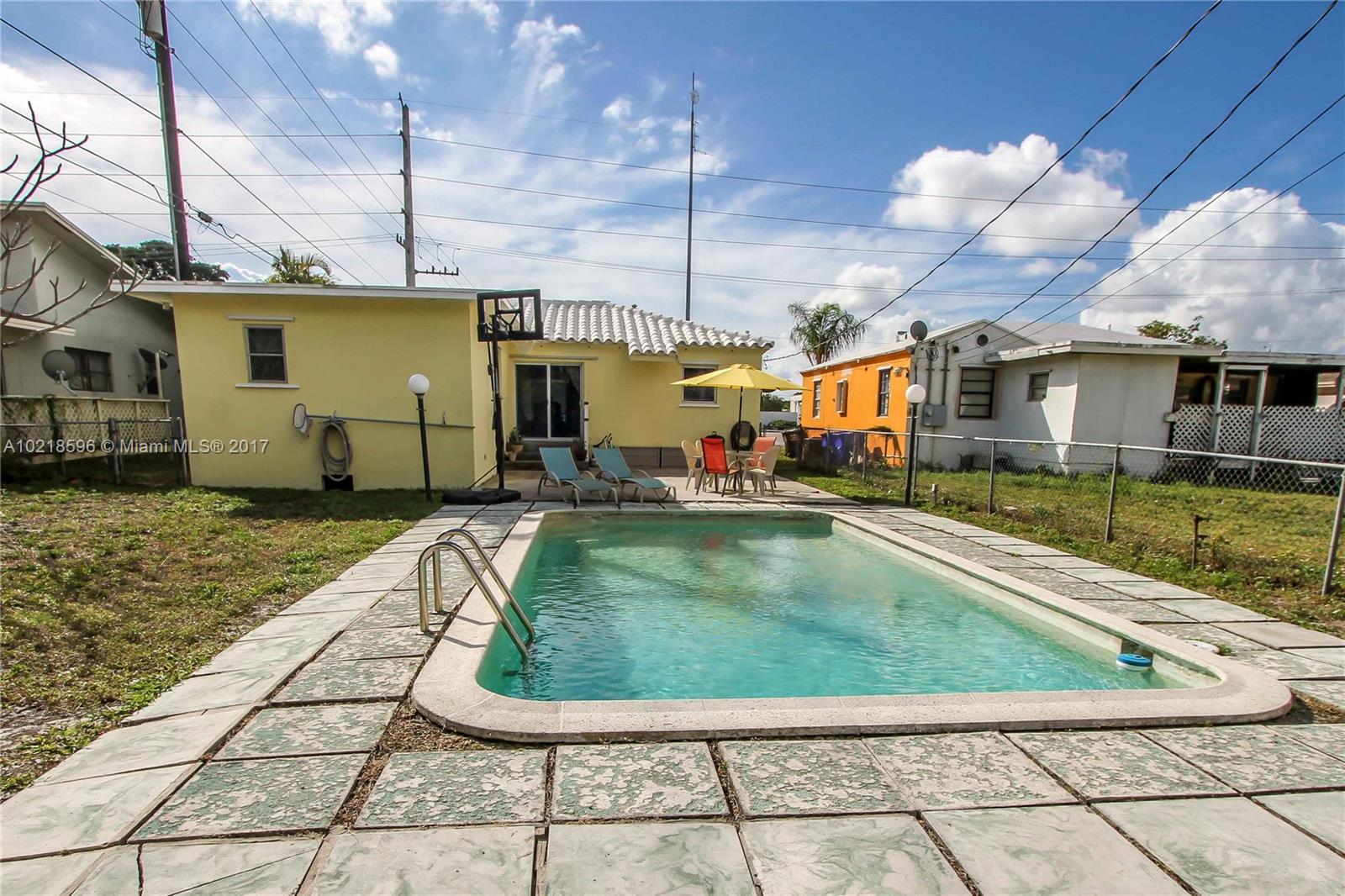Move in condition! Bright 3 Bedroom, 2 Bath, 1 car garage home with large pool and fenced in backyard. Spacious Master BR features walk in closet. Formal Dining room. Kitchen features granite countertop, Wood cabinets, Stainless Steel appliances, gas stove, gas water heater. Newer Impact front, French doors and garage door. Newer water heater. Septic. Freshly painted. Covered front porch, open back patio. Located across from the Montessori school short distance to downtown Hollywood, Beaches and I95.