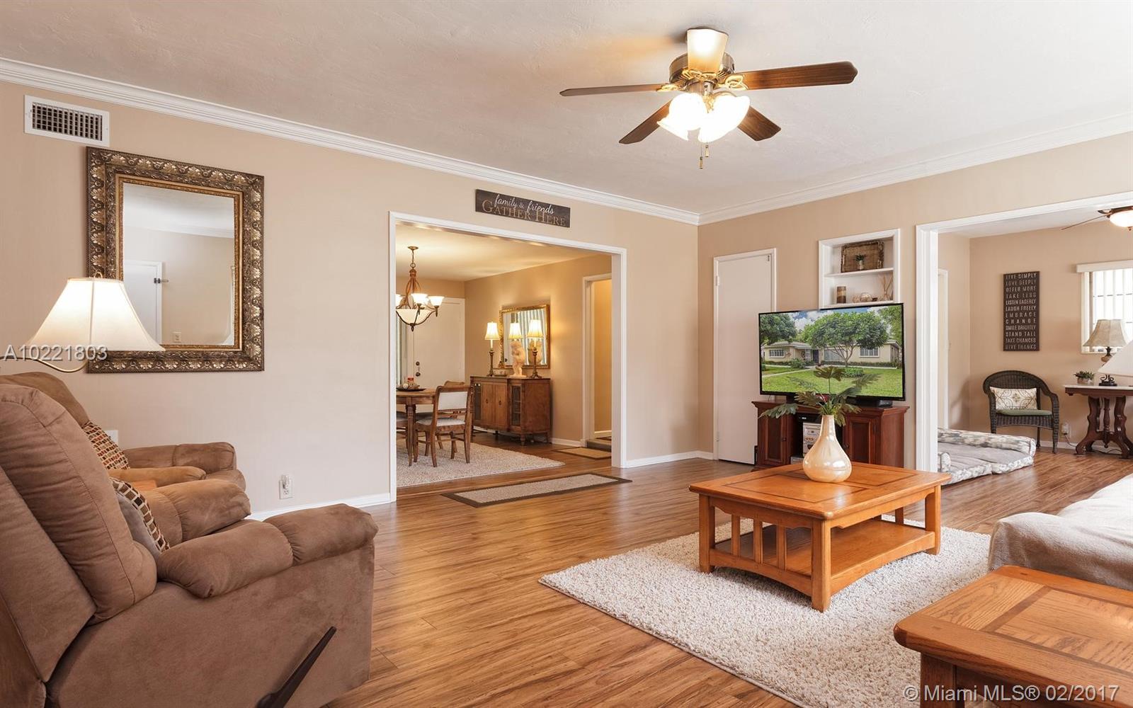 3 BEDROOMS AND 3 FULL BATHS ON A QUIET RESIDENTIAL STREET IN MIAMI SHORES. BIG FENCED YARD WITH ROOM FOR A POOL. COVERED PATIO, ATTACHED ONE CAR GARAGE. BIG OPEN LIVING ROOM, FORMAL DINING ROOM, LARGE FAMILY ROOM OVER LOOKING THE GARDEN. LAMINATE WOOD FLOORING AND CARPET OVER TERRAZZO. BIG BEDROOMS AND LOTS OF CLOSET SPACE. MASTER BEDROOM HAS LARGE BATH AND CLOSET. SUPER CLEAN AND WELL CARED FOR. FRESHLY PAINTED INSIDE AND OUT. MOVE IN CONDITION.