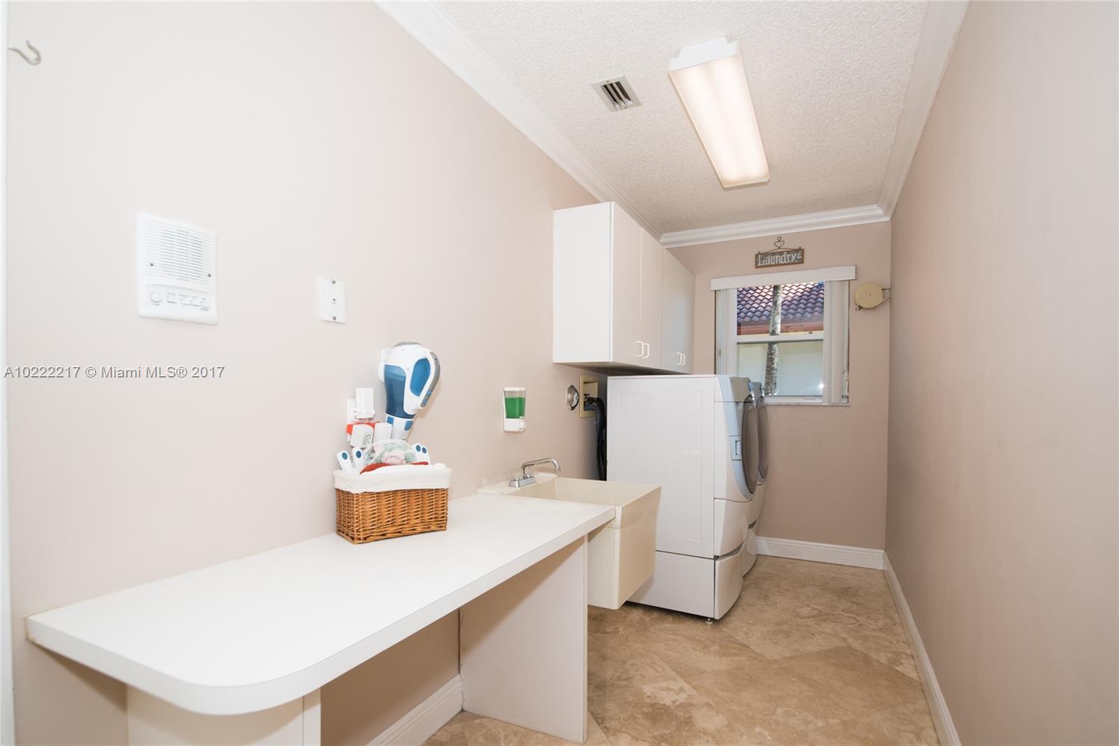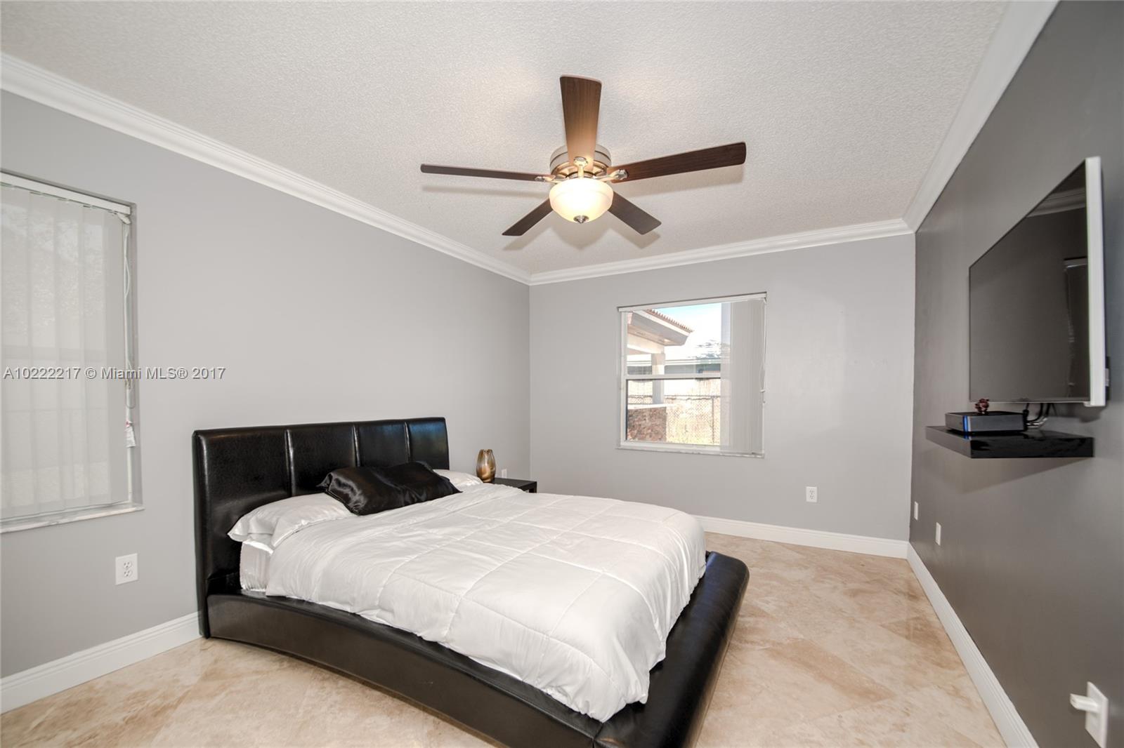 Beautiful 5 bedrooms,3.5 bathrooms, customized office, over 630sqft added to original home. Custom baths, kitchen, closets, wall unit, crown moldings, laundry room. Custom pool w/waterfall, fully equipped gazebo. 2 master bedrooms w/Jacuzzi, all marble floors. Separate master suites, granite counter tops, accordion shutters, stainless steel appliances, ceiling fans all rooms, plantation shutters, tinted windows, intercom, central vacuum,2 car garage w/custom cabinets,2 AC systems, sprinkler system.