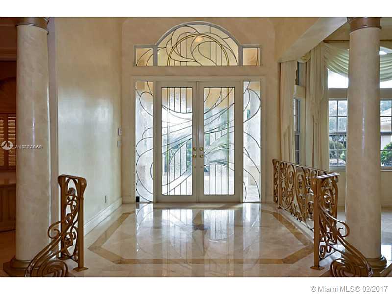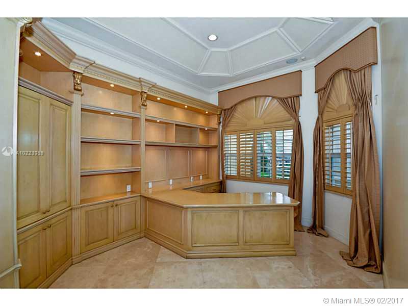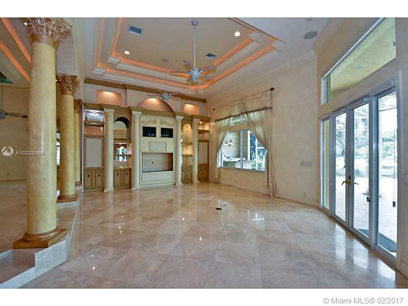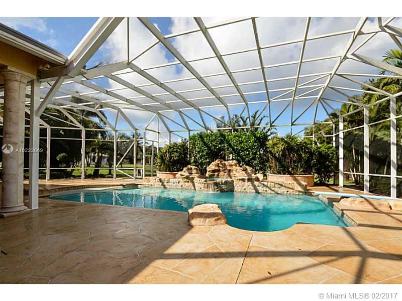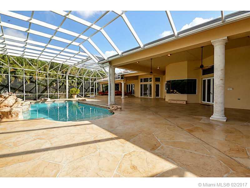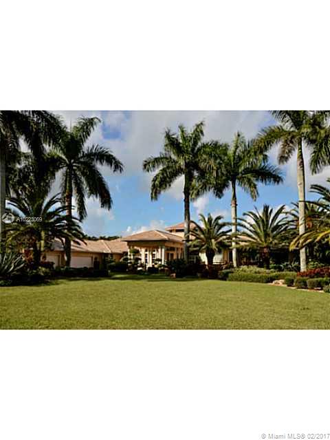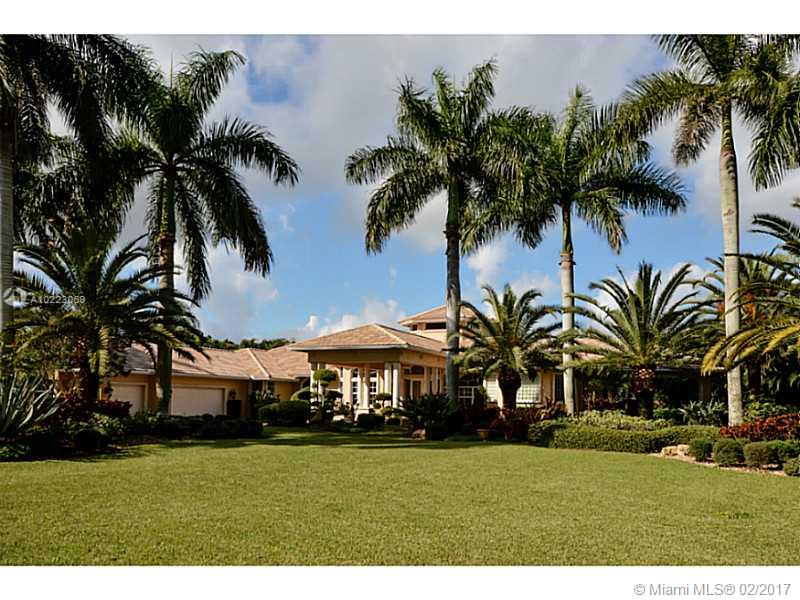 Fabulous 5 bdrm, 5.5 bth, 3 cg, one story, lakefront home is situated on a +1 acre tropical oasis. This estate home features; Master Suite w/ sitting room & built-ins, Gym & Sauna off Master, Home Office w/ built-ins, Saturnia marble floors, custom Kitchen w/ center island, wetbar, built-in entertainment center, central vac, impact glass, screened patio & pool with raised spa. Summer Kitchen, 80KW generator. Great family & entertaining home. and much, much, more to see!