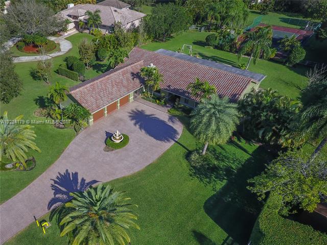 Beautiful Custom Home Renovated in 2010 nestled on 1.77 acres New Lg eat-n Gourmet kitchen w/ Stainless Steel, sub zero, granite, wood cabinets, island features Living Room w/ Working fireplace, Hardwood Fls Bedrooms, PGT Windows and Doors throughout includes garage & skylights, 2 ac units (2006&2016) Lg Generator runs entire home Bonus room/Studio-gym/dance + additional office (could be in-law quarter) extra Lg Media room Built-in Storage, Breeze way to 3 car garage Tennis courts, zoned (2) horses.