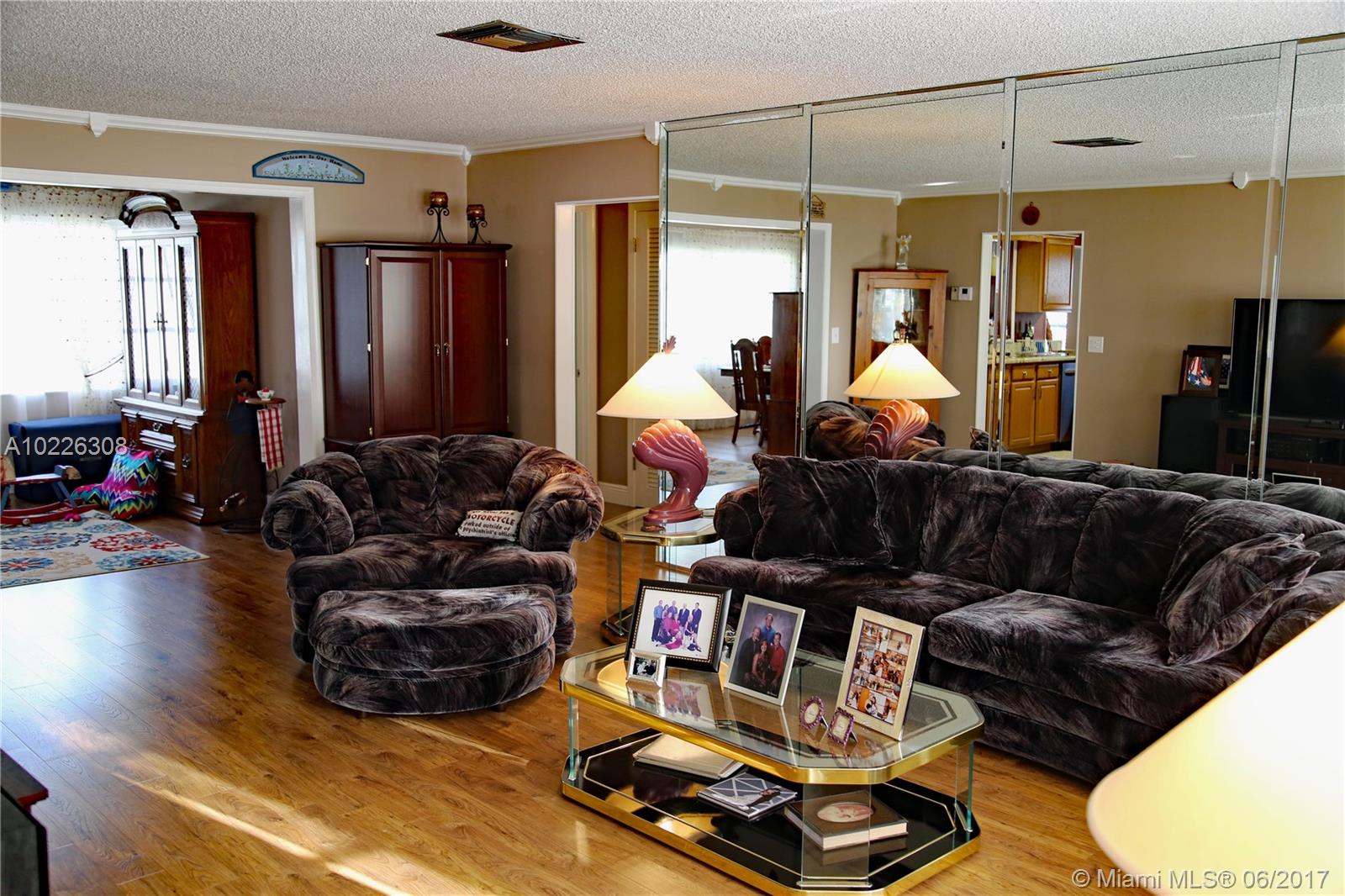 Beautiful home - Mint Condition! Remodeled kitchen with stainless steel appliances & granite countertops, updated baths, crown molding, quality wood laminate floors throughout! Spacious living room and large Florida room. Additional expanded closet space in master bedroom. Garage plus stamped concrete 4-car driveway. Accordion hurricane shutters, new a/c in 2013, large front porch. Modern window treatments, custom painted interior, bbq patio area and more! Look no further for the home of your dreams! 0/55. Great value, thousands below recent appraisal!