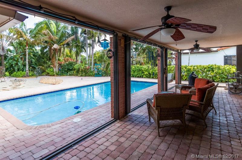 Beautiful open 3 bedrooms 2 bath with ceramic tile throughout with a split floor plan. French doors into the master bedroom. Open kitchen overlooking beautiful pool and backyard. Kitchen offers 2 Jen Air ovens, Keruig Stainless Steel Refrigerator, bosch dishwasher and a garbage disposal. Accordian shutters, metal roof, nest a/c, a beautiful covered porch overlooking a freeform pool with a waterfall behind it. Sprinkler system and alarm system. House is move in ready, on a lovely quiet street.