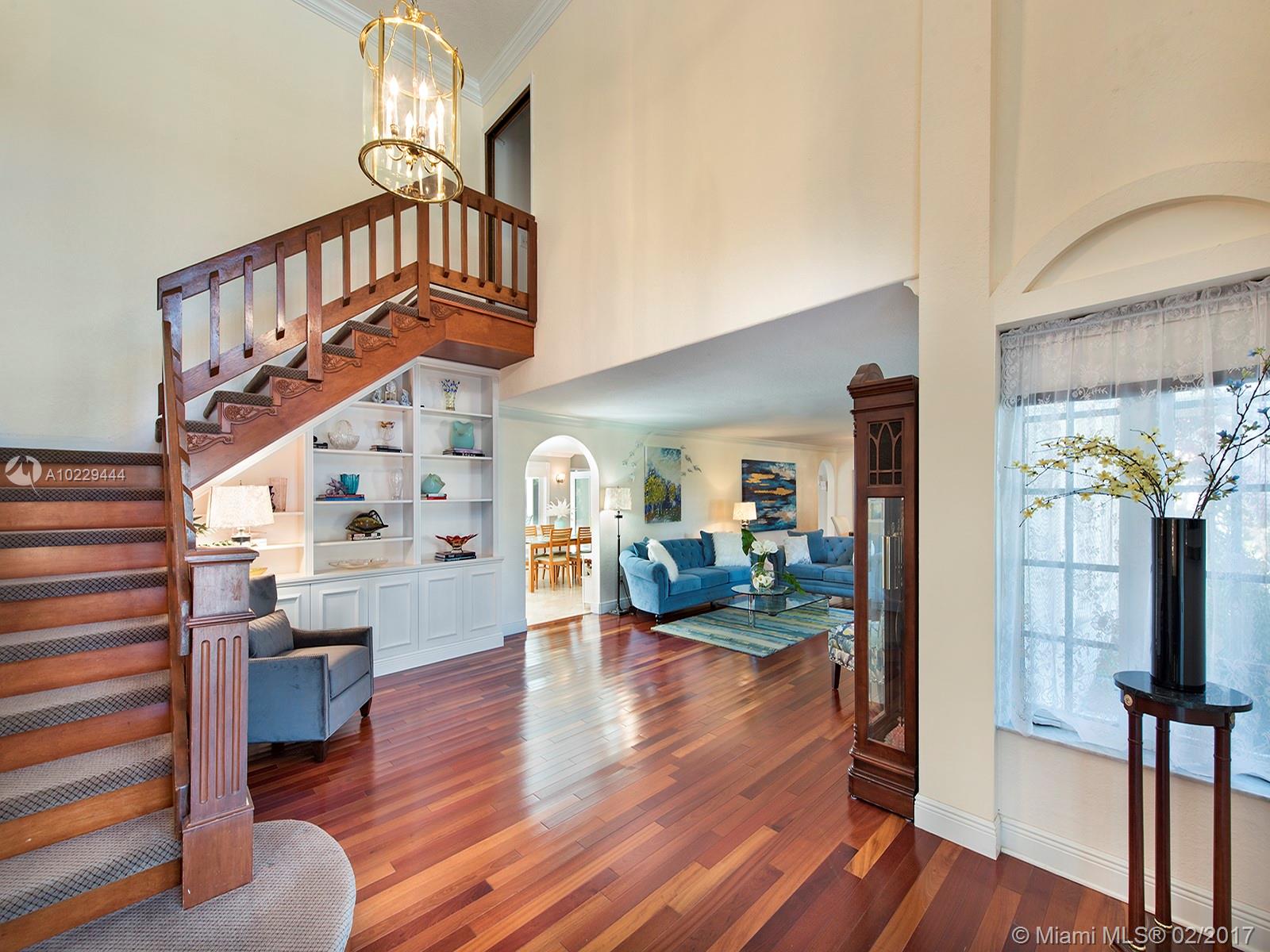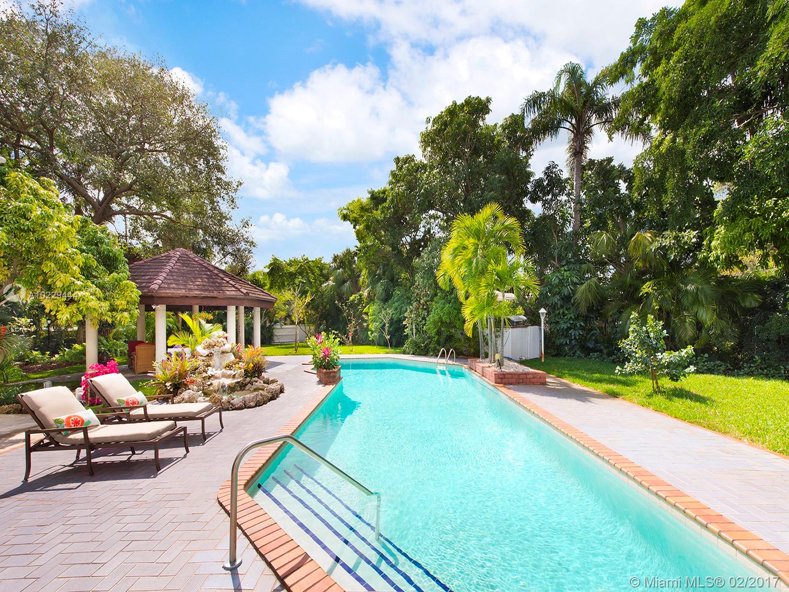 Stately 2-story Mediterranean home on huge lot. Soaring foyer, elegant LR/DR w/mahogany flrs. Upgraded eat-in kitchen w/island, SS appl, lots of cabinets/built-ins leads to large FR & 1/1 guest suite w/ laundry. Upstairs 4/2 + master suite w/walk-in closet & bath w/rain shower, double sink, bidet & soaking tub. Balconies galore! Large pool w/hot tub & extensive paving surrounded by private, lush yard. Grand gazebo & outdoor fireplace ideal for outdoor entertaining. Impact windows, sprinklers & much more!