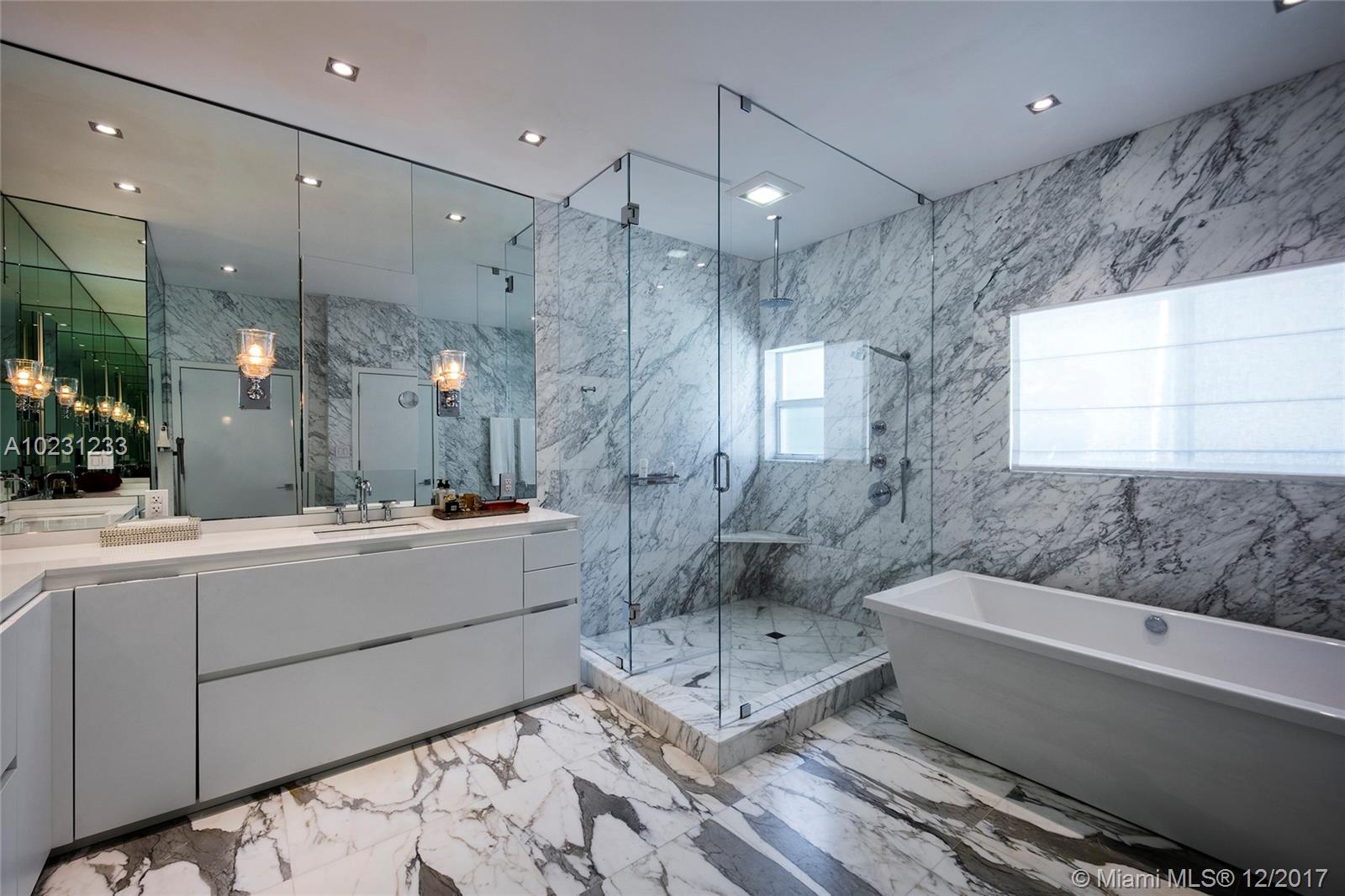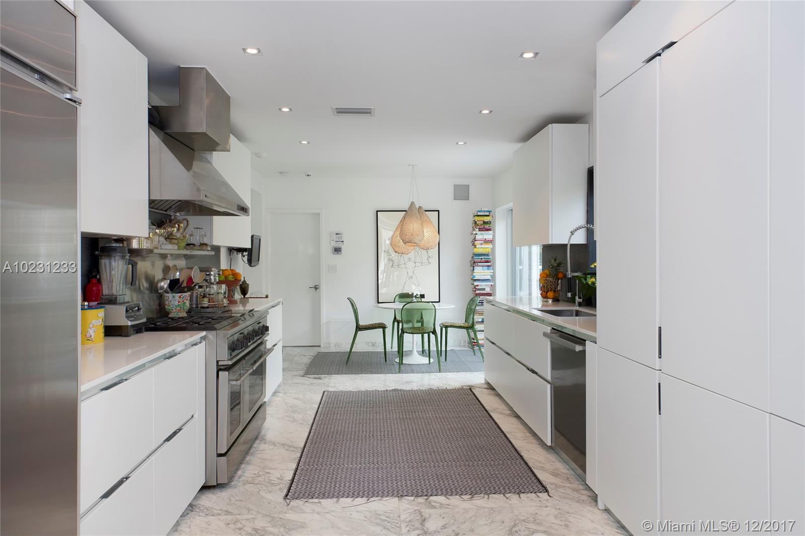 This stunning waterfront residence in gated Allison Island sits on a manicured 21,600 SF lot. Fully renovated/gated home features soaring 15FT ceilings, exquisite Carrera Marble & oak floors. Open living, dining & family areas with abundant natural light. Gourmet kitchen w/top appliances, Italian cabinetry. Large master w/water views and beautiful marble master bath. Large outdoor pool & entertainment deck for relaxing, large private dock, library can be converted into sixth bedroom.Excluded light fixtures in Dining Room, Kitchen, Bedroom SW, Office, and Master Bedroom. Also excluded: grey wall lamp in Dining Room, 2 brass shell wall sconces in Living Room. All TV's.