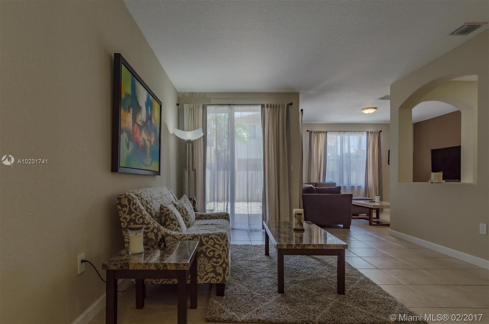 Beautiful elegant fully upgraded 4/2.5 home in Doral. This well maintained home is amazing, kitchen with SS appliances, granite countertops, new washer & dryer, large pantry. 1st floor with large tiles 2nd floor has dark wood laminate flooring. All 3 bathrooms fully upgraded, master bathroom double sink. Back yard has pavers, large space great for entertaining. Community has guard.