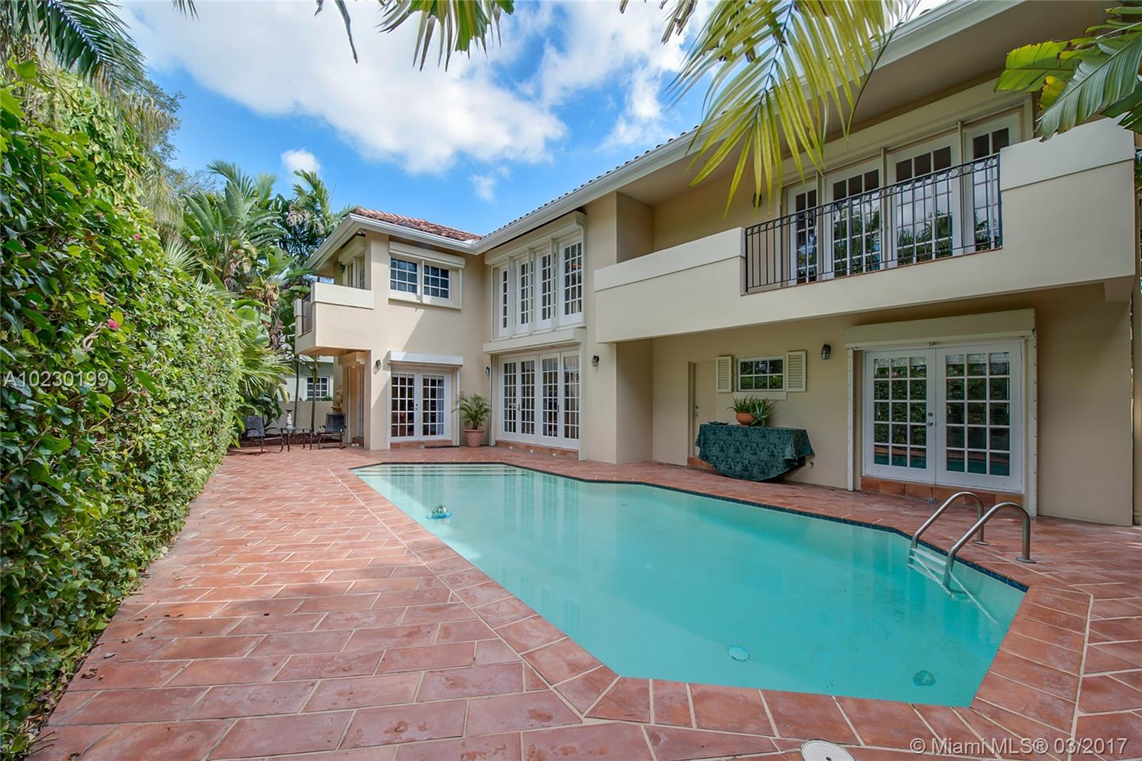 Wonderful opportunity to live on a great S. Gables oak lined street with beautiful homes and a coveted lifestyle. Light filled Living Room with 20 ft. ceilings and dramatic built in library wall with rolling ladder. 2015 Kitchen with white wood cabinets with quartz countertops, breakfast area, and adjoining Family Room. Formal Dining with charming patio. Master with private terrace. French doors out to a large Pool. Garage. Enjoy all the best of Coral Gables and SOMI.