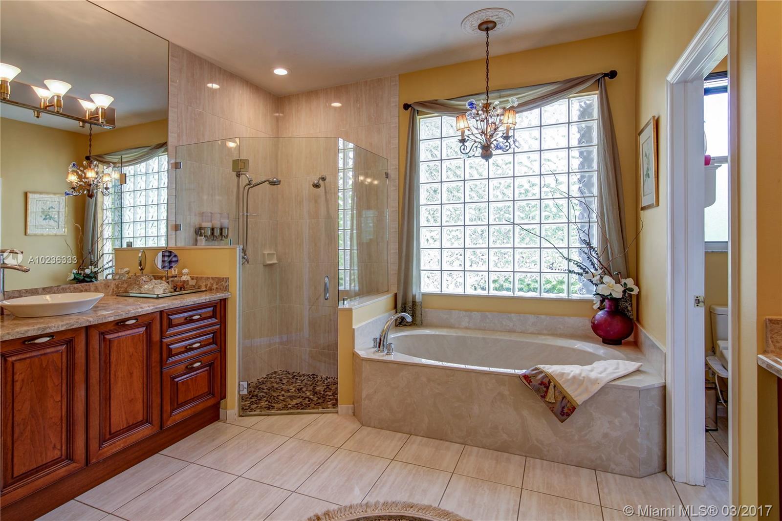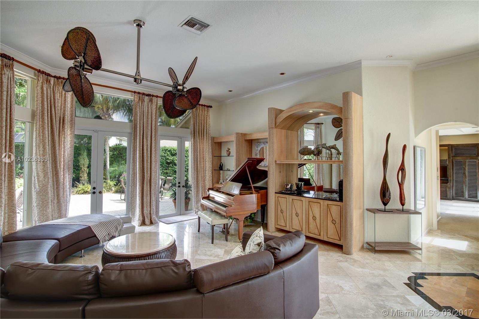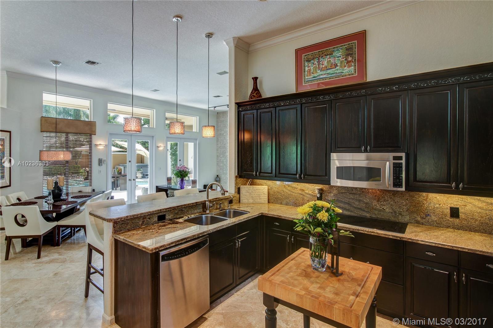 Step into this beautifully appointed Two Story COURTYARD home featuring separate Guest House surrounded by serene Saltwater Pool and Travertine Patio area with Summer Kitchen. Master Bedroom and 2 additional Bedrooms on the ground level PLUS 3 Bedrooms on second level. Updated Kitchen, High Gloss Marble Flooring in living areas and Limestone Feature Wall with Ethanol Fireplace. Expansive Back Yard complete with Fire Pit makes this a perfect home for Entertaining and Enjoying South Florida living.