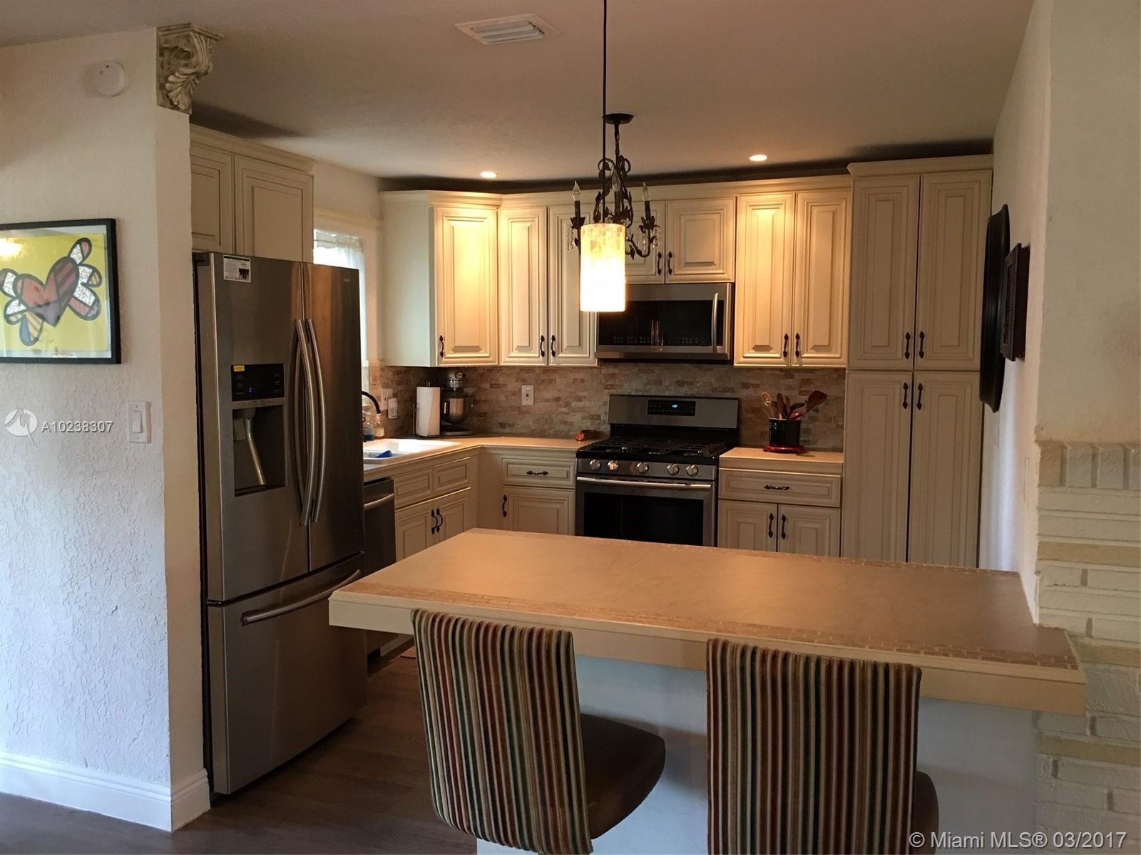 Tastefully remodeled, elegant 3 bedroom 2 bathroom home, featuring florida room, large fenced yard with place for barbecue, newly installed hurricane impact windows, circular driveway, chef's delight gas kitchen, fireplace, new Samsung SS appliances and more.