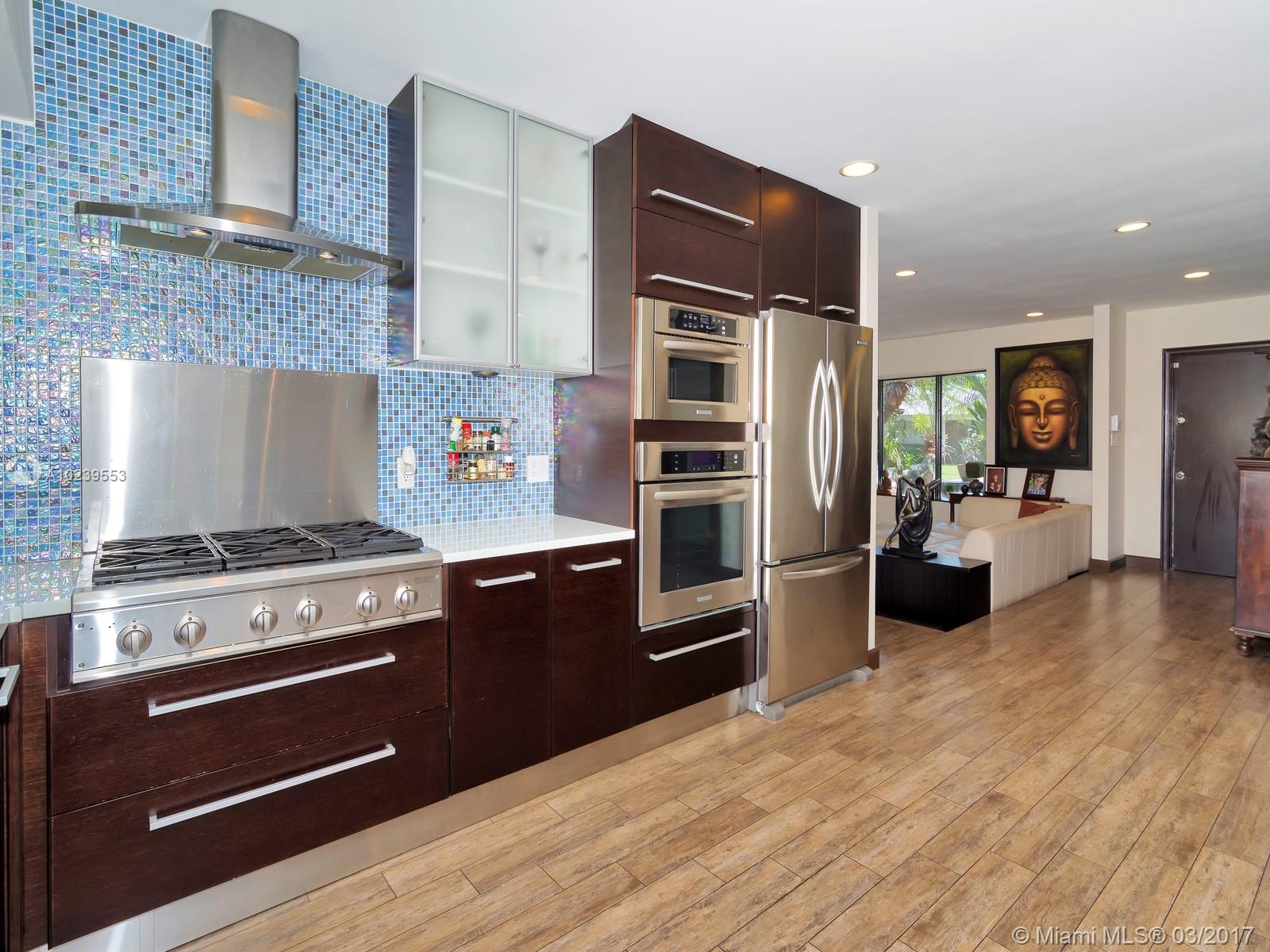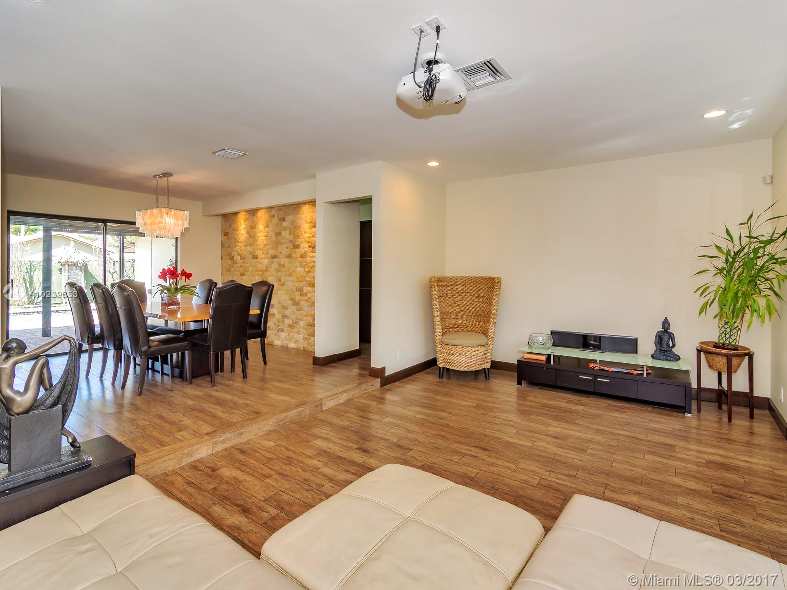 Pride of ownership is evident in this large modernized 3/3 w/ open floor plan featuring a stunning kitchen, stainless steel appliances, wood cabinets, gas cook-top, walk-in pantry, wood look porcelain floors, solid wood modern interior doors, floating vanities, custom stone accent wall, fish pond, lush tropical landscaping, private back yard w/ over-sized pool, outdoor kitchen & pergola, fruit & herb garden, in ground generator & accordion shutters ideal Florida home. Near houses of worship & parks.