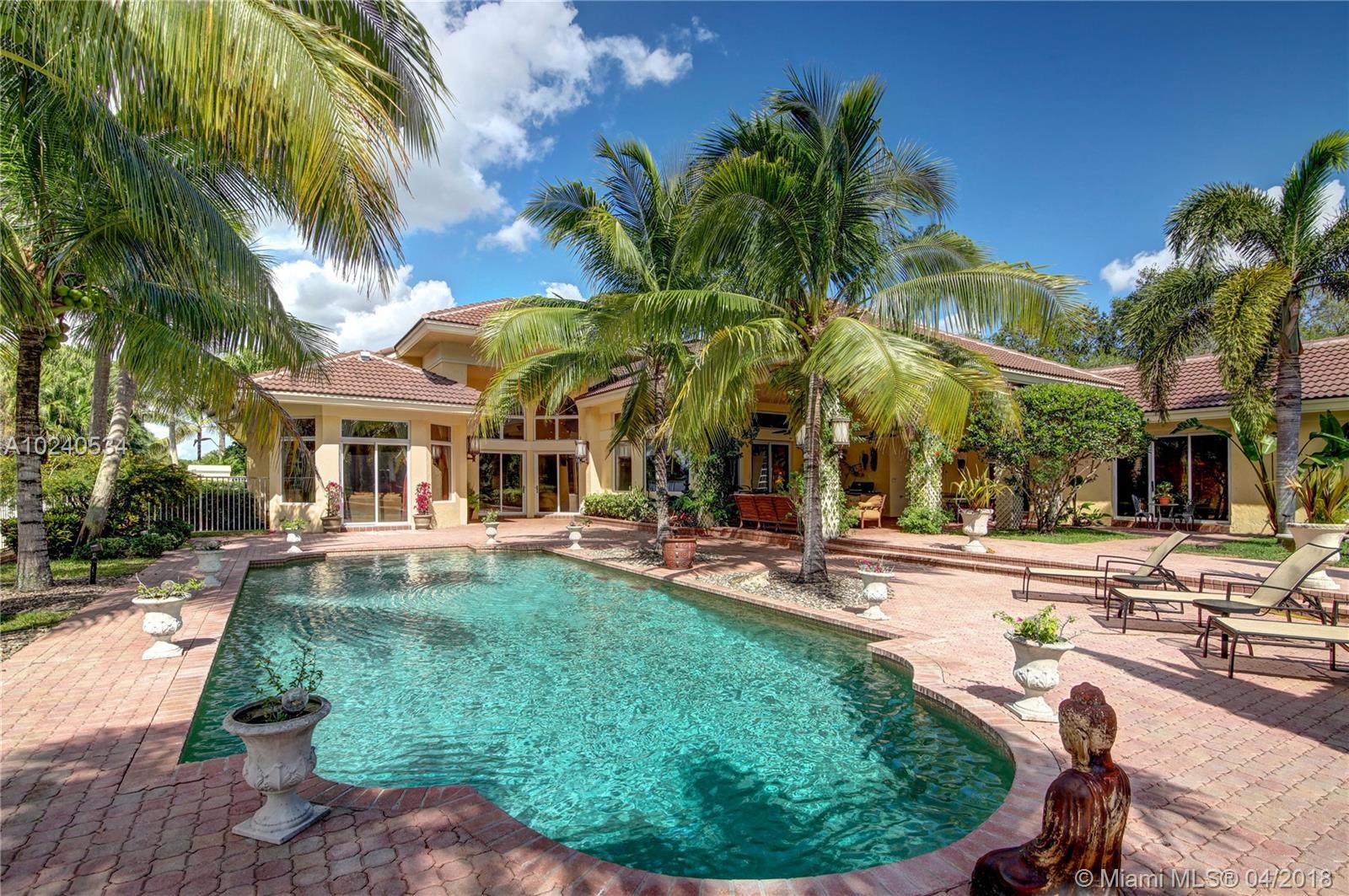 5 bedroom 4 & 1/2 bathroom custom estate in desirable Windmill Ranch Estates. Gorgeous pool area with gazebo overlooks magnificent water views. Marble and wood floors. Chef's delight gourmet kitchen with same beautiful and tranquil views. Triple floorplan. Media room. Freshly painted. Crown moldings throughout. Master bedroom with separate sitting room. Newer roof. Lushly landscaped. Huge circular driveway.