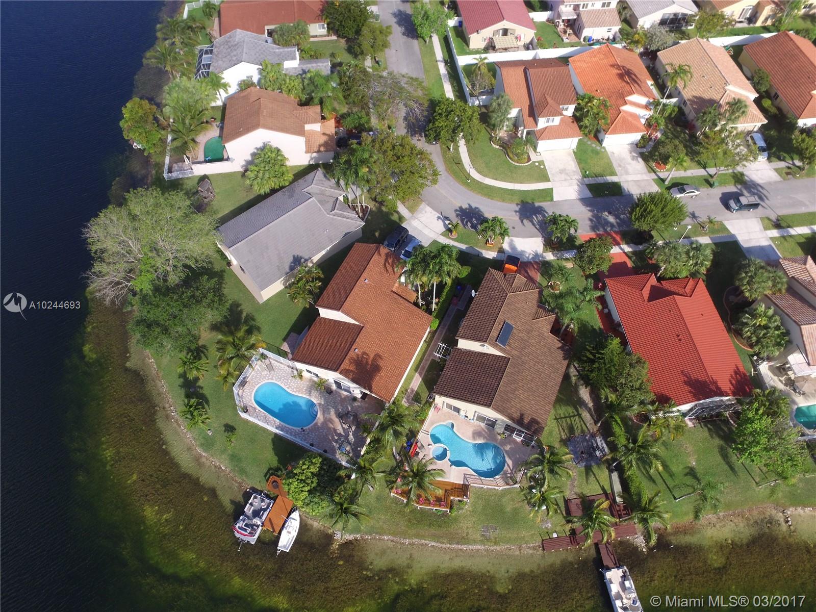 Cayman model home in gated community of Las Brisas with upgraded kitchen and serene view of lake. New Metal roof in 2007. Salt water pool with sun deck and patio. Home has a private dock on one of Pembroke Pines largest lakes. Master is down stairs with additional guest bathroom. Upstairs are three bedrooms and bath. Wood floors throughout with the exception of the master which is tile. Accordion hurricane shutters. 3 Year old upgraded A/C. 24/7 roving security. Newly Landscaped. Owner is planning to replace flooring. Move quickly and select your style and Color.