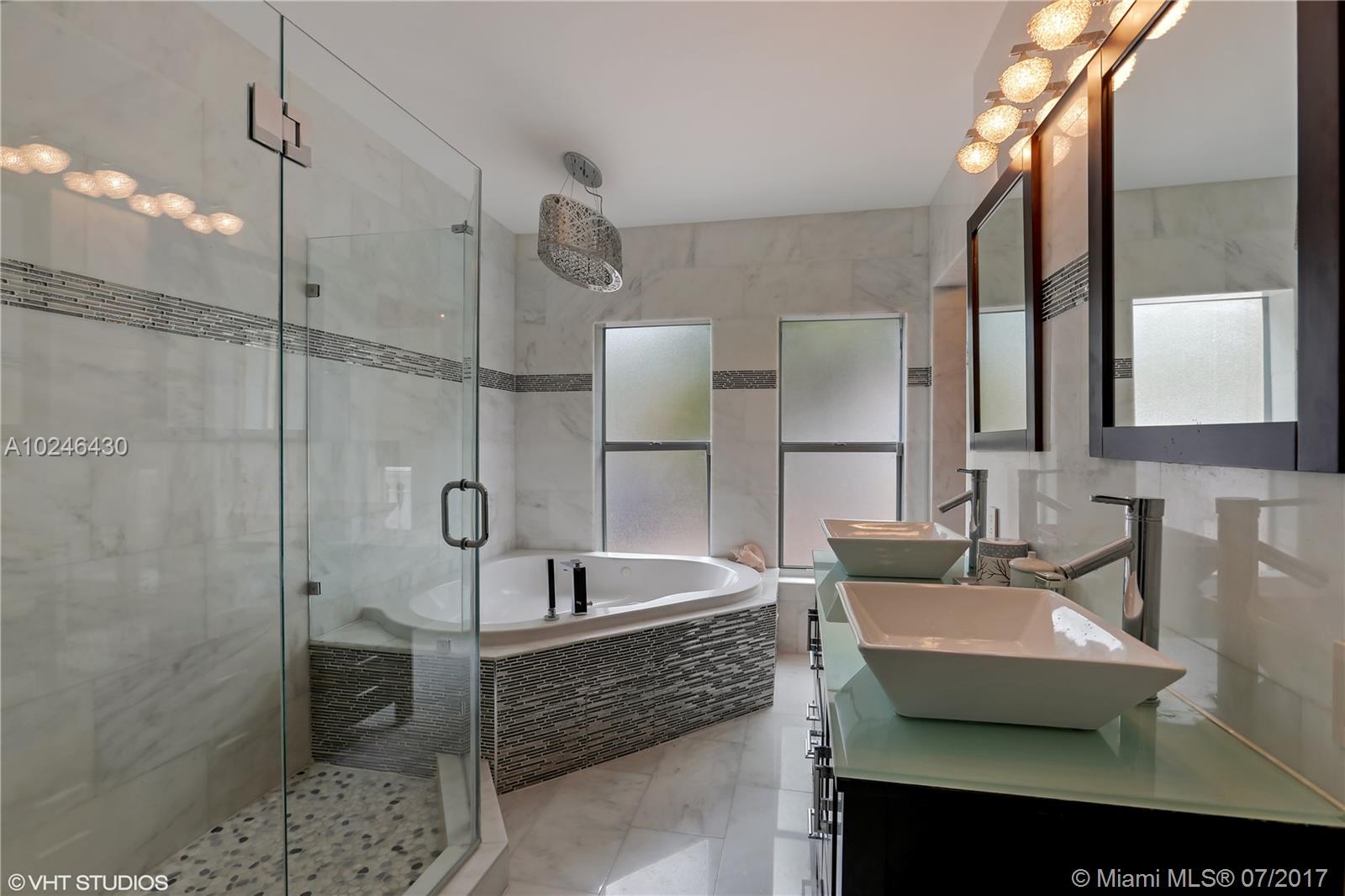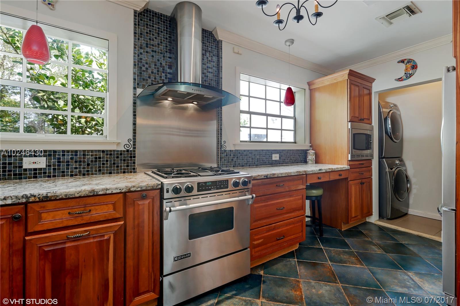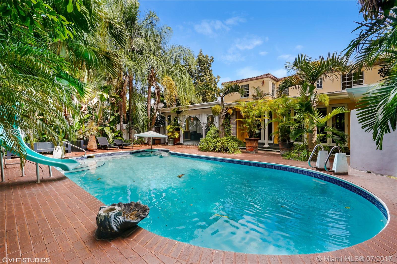Beautiful two story 4 bedrooms/4.5 bathrooms home on Alton Road w/circular driveway. Downstairs powder room, new master bedroom/ marble bathroom with Jacuzzi tub, shower, dual sinks & bidet.Upstairs 3 bedrooms/2 bathrooms.Interior features: wood floors, working fireplace, bar, wood staircase w/iron railings. Kitchen has granite countertops,wood cabinetry, stainless steel appliances and tile flooring.French doors overlook open patio with built in BBQ and heated pool with slide.Garden is lushly landscaped.