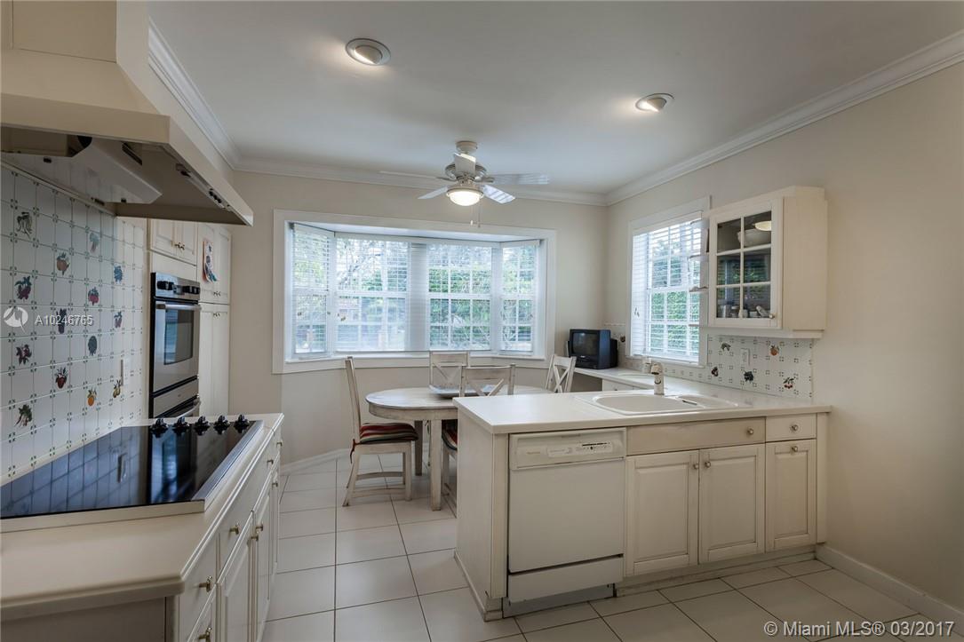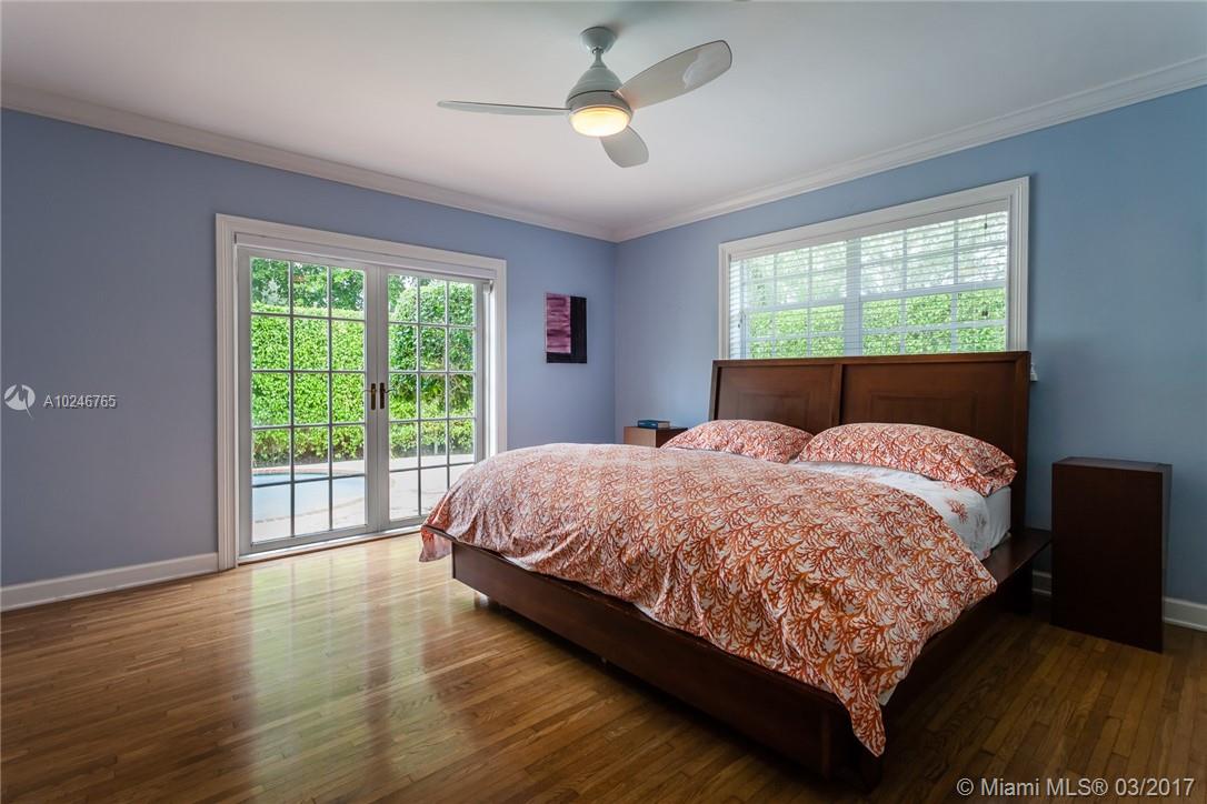 This light filled and spacious home is located in Coral Gables and features 4 bedrooms, 3 bathrooms, large living room, family room, eat-in kitchen, formal living room, two car garage, and a patio with a pool. Allowing for views of the pool are the master bedroom which has large glass windows as well as the window lined living room. The layout is fit for entertaining and lends itself to the overall open feel.