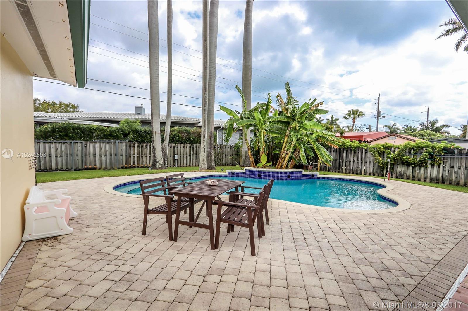 Gorgeous updated pool home in the heart of Hollywood Lakes features large open floor plan, 3BR/2 BA, large den w/impact French doors to beautiful pool area & landscaped yard. Open kitchen has granite countertops, stainless steel appliances. Master BR w/2 large walk-in closets. Master bath w/large river rock floor shower. Laundry room w/built-ins. Porcelain floors, Recessed lighting, hurricane shutters, alarm system, tank-less water heater, gas stove, built-in gas grill, new AC, ducts and energy efficient.