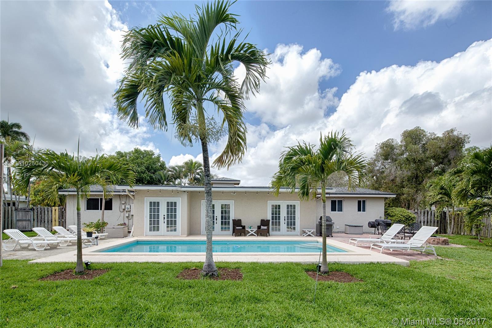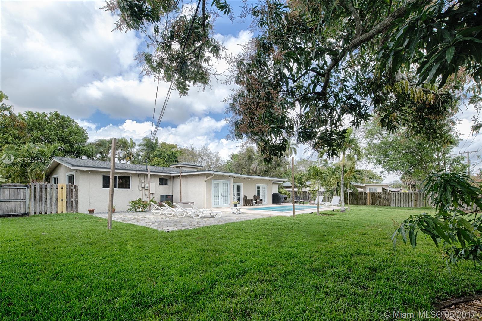 This is a pristine 3 bedroom 2 bathroom plus office home situated on an oversized lot with a large swimming pool. The interior features a spacious open floor plan with beautiful natural light, a renovated kitchen with quartz countertops & newer stainless steel appliances, updated bathrooms, brand new AC, great closets, full size laundry room, two car garage & more. The exterior is perfect for entertaining. Featuring a freshly sodded 13,750 SF lot, swimming pool, fruit trees, privacy fence & circular drive