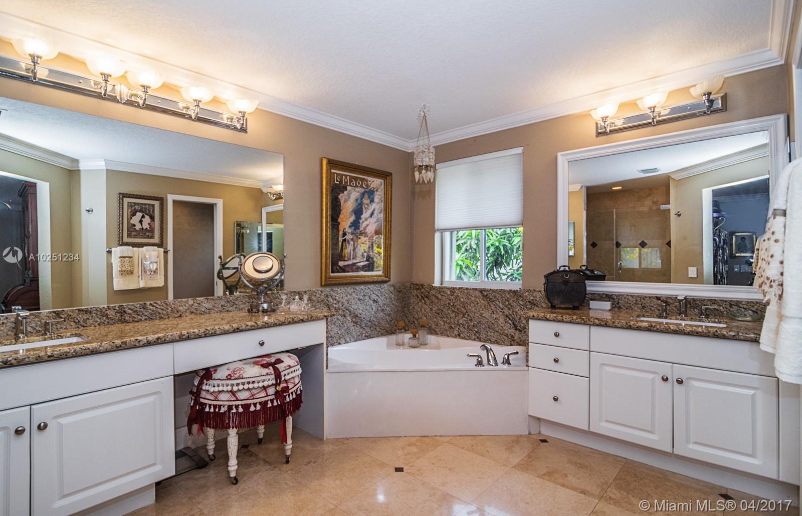 Stunning Turn Key Glendale model tucked on quiet palm tree lined street walking distance to Park & Playground. Home boasts New marble floors throughout living areas w/double french doors to private, fully fenced yard large pool. This elegant home has a two story living room w/ full bed/bath down. Brand New top of the line Viking SS appliances, granite countertops & built in wall unit in family room. All baths w/ granite countertops Expansive master bedroom with sitting area, luxurious marble master bath.