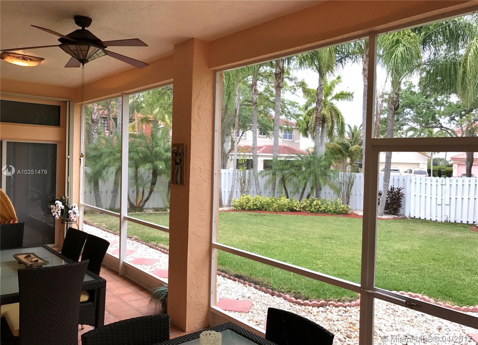 Look No further! A move in ready model home. Updated 4 Bedrooms/2.5 Bathrooms on an oversized Corner Lot in desirable gated Weston community- The Meadows. Updated Kitchen (Granite Tops / 2016 SS appliances). Flooring throughout the home. Many upgrades including: Built in office. power surge protector in Entire house. Security cameras around house. Hurricane Shutters. Built in garage with hurricane proof garage door. Bose sound system and Much More
