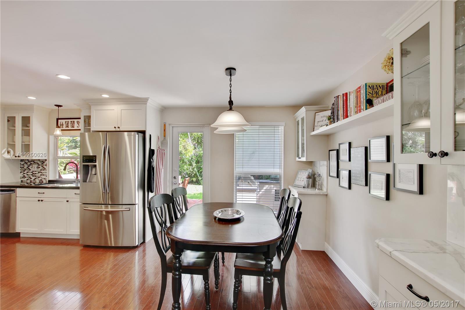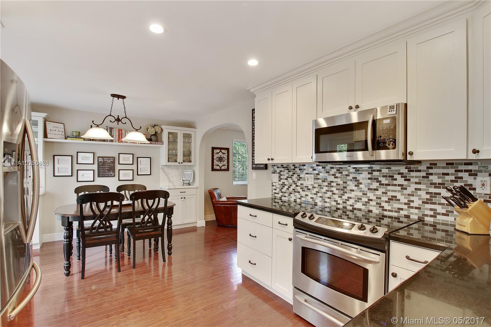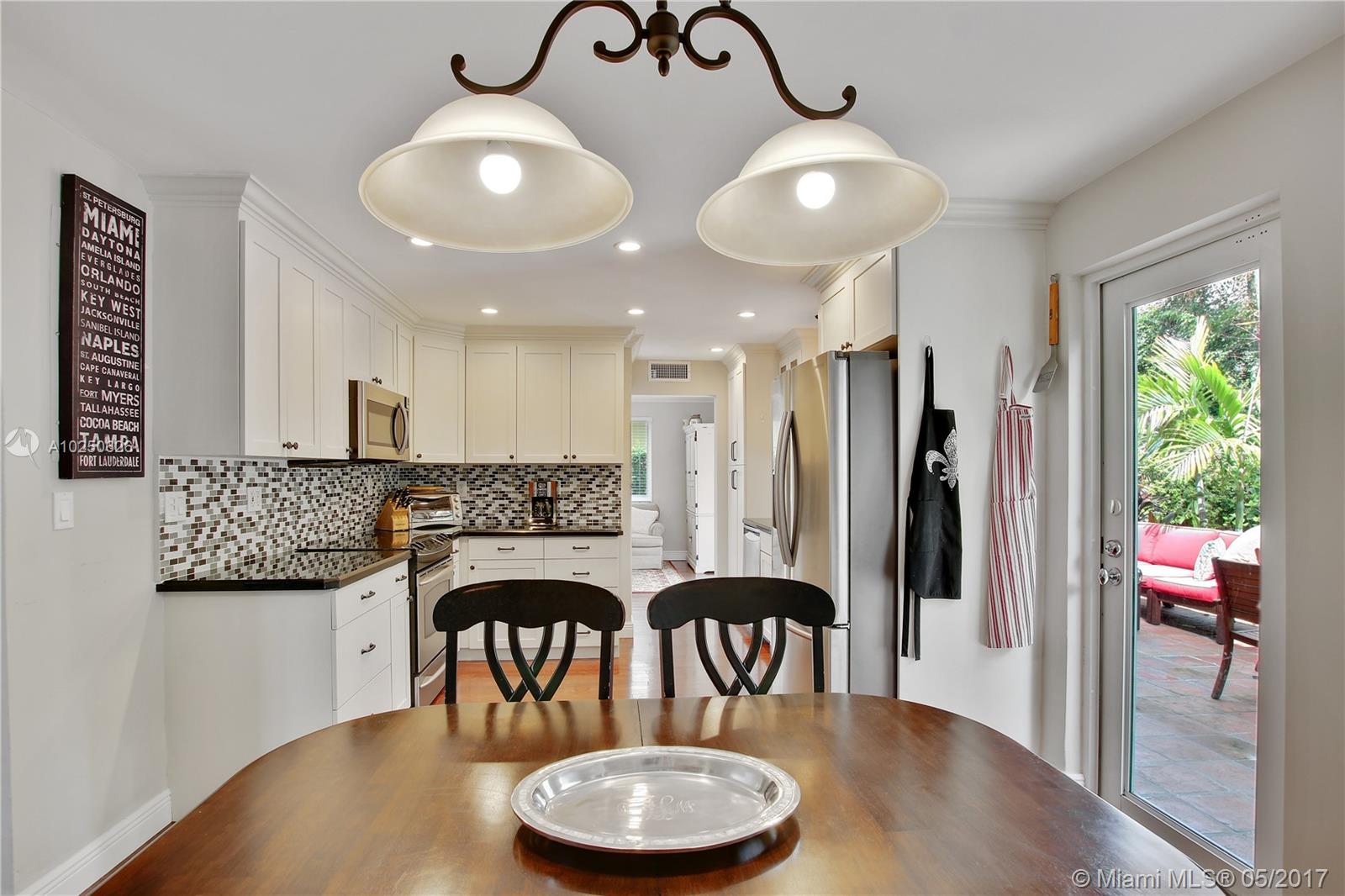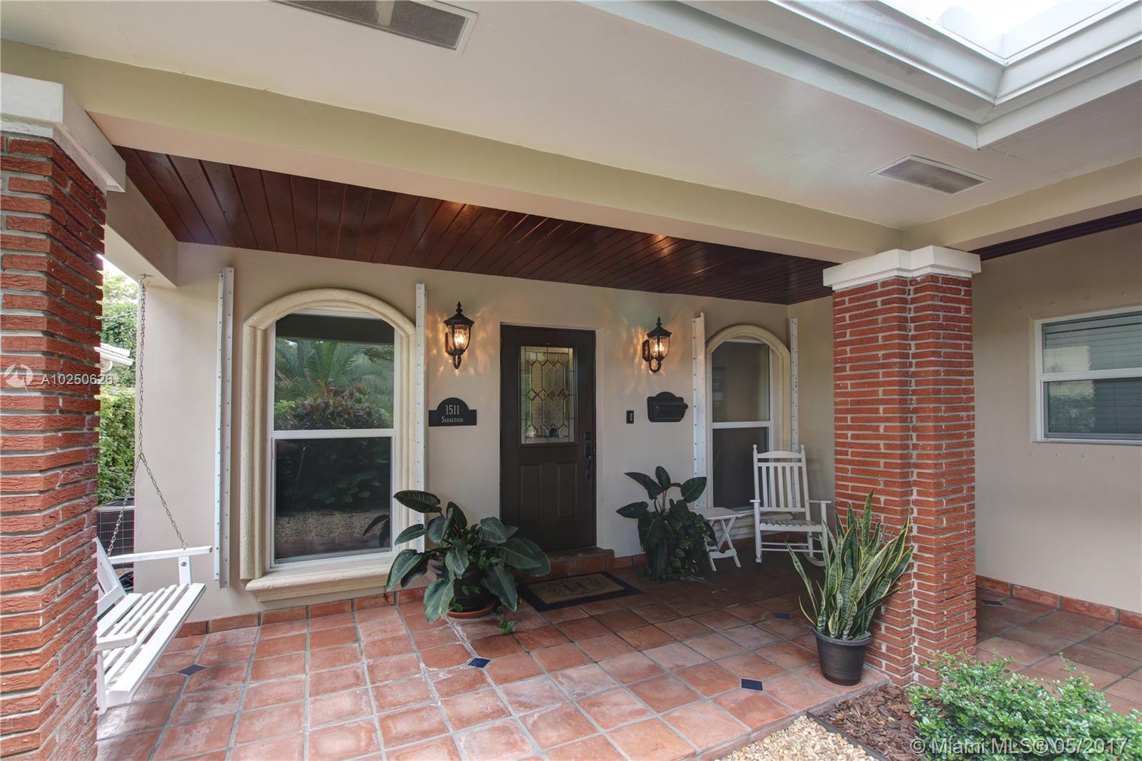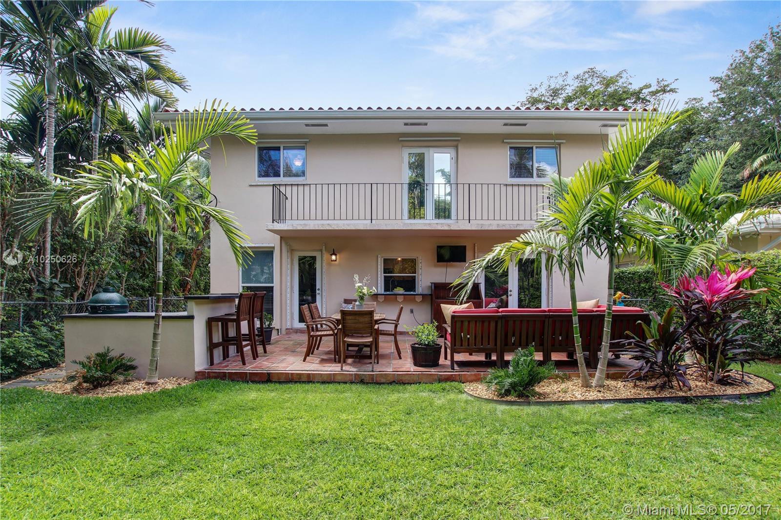 In much desirable Coral Gables, this home exudes charm & comfort with attention to details. Downstairs rooms easily transition from living room to recently remodeled kitchen to den/office & outdoor entertaining area. The fenced back patio is perfect for family fun & guests to relax w/built-in BBQ/snack bar/sitting space. The light/bright second floor features master suite w/walkin-in closet & designer bath + 2 other bdrms. Appliances including a/c, have been recently upgraded. Must see to appreciate!