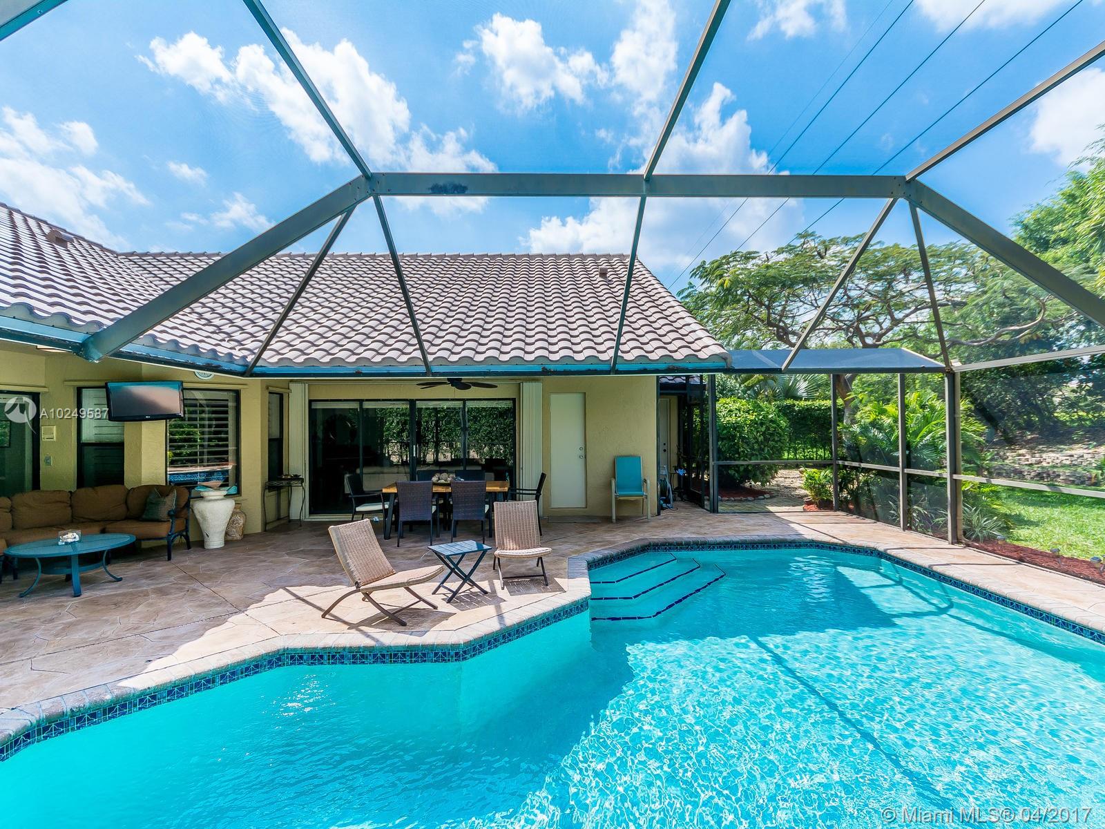 Beautifully maintained, completely renovated 5/3/2CG situated in charming boutique Weston comm! Large granite/wood kitchen, stainless appli, long snack bar, stone tile in living areas. 3-split floor plan, newer roof, LED lights, no popcorn/flat walls, freshly painted inside & out, newer air conditioner, custom closets, stunning updated bathrooms, w/heated pool, raised spa,lush landscaping in a totally private setting! Magnificent Peace Mound Park close by, 24HR guard gate, A+ Schools. WELCOME HOME!