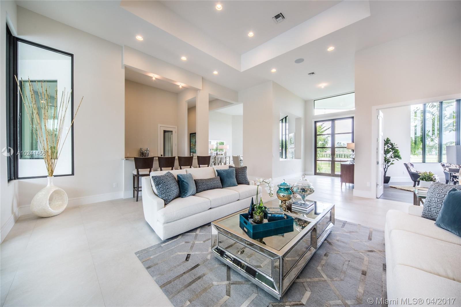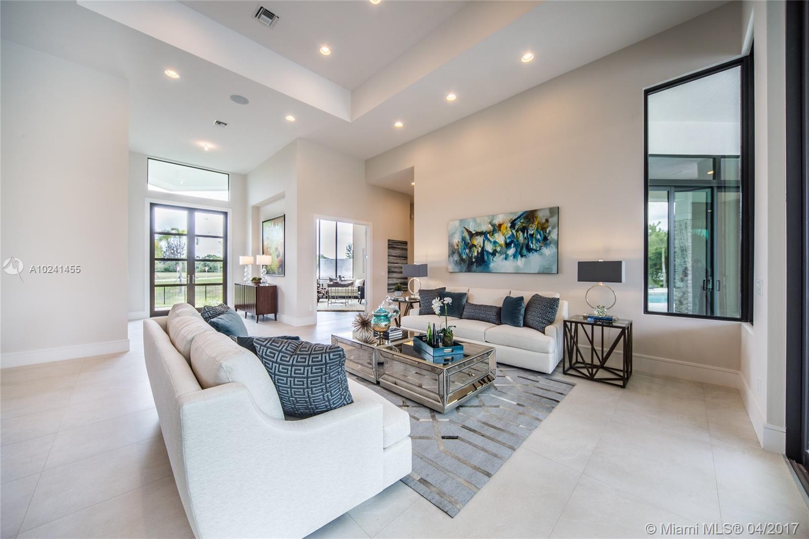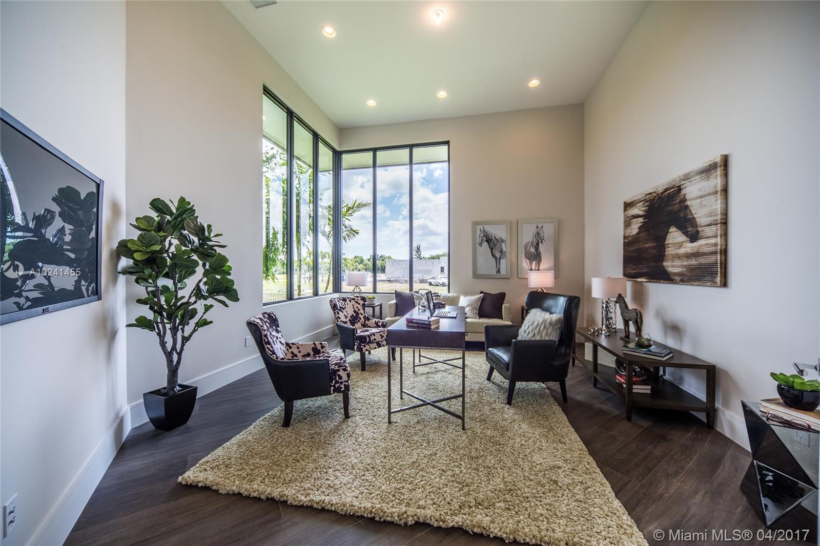 This brand new construction, contemporary ranch design (by architect Maurice Menasche) offers a very distinguished style with sweeping 14ft ceilings, 5 bedrooms (5 suites) 6 baths, 2 half baths, large office, plus separate entertainment area upstairs which can be converted to media room, guest suite or 6th and 7th bedrooms. This majestic home boasts highly desirable designs and finishes with Sub-Zero & Wolf appliances chef's kitchen, uniquely designed baths, full bar, wine room, tankless gas water heaters, impact glass, structured wiring, central vacuum & an elegant outdoor pool area w spa and summer kitchen. Welcome to a peaceful and private enclave of 8 individually gated & custom designed estates. Come live in a country setting in the picturesque equestrian area of Southwest Ranches.