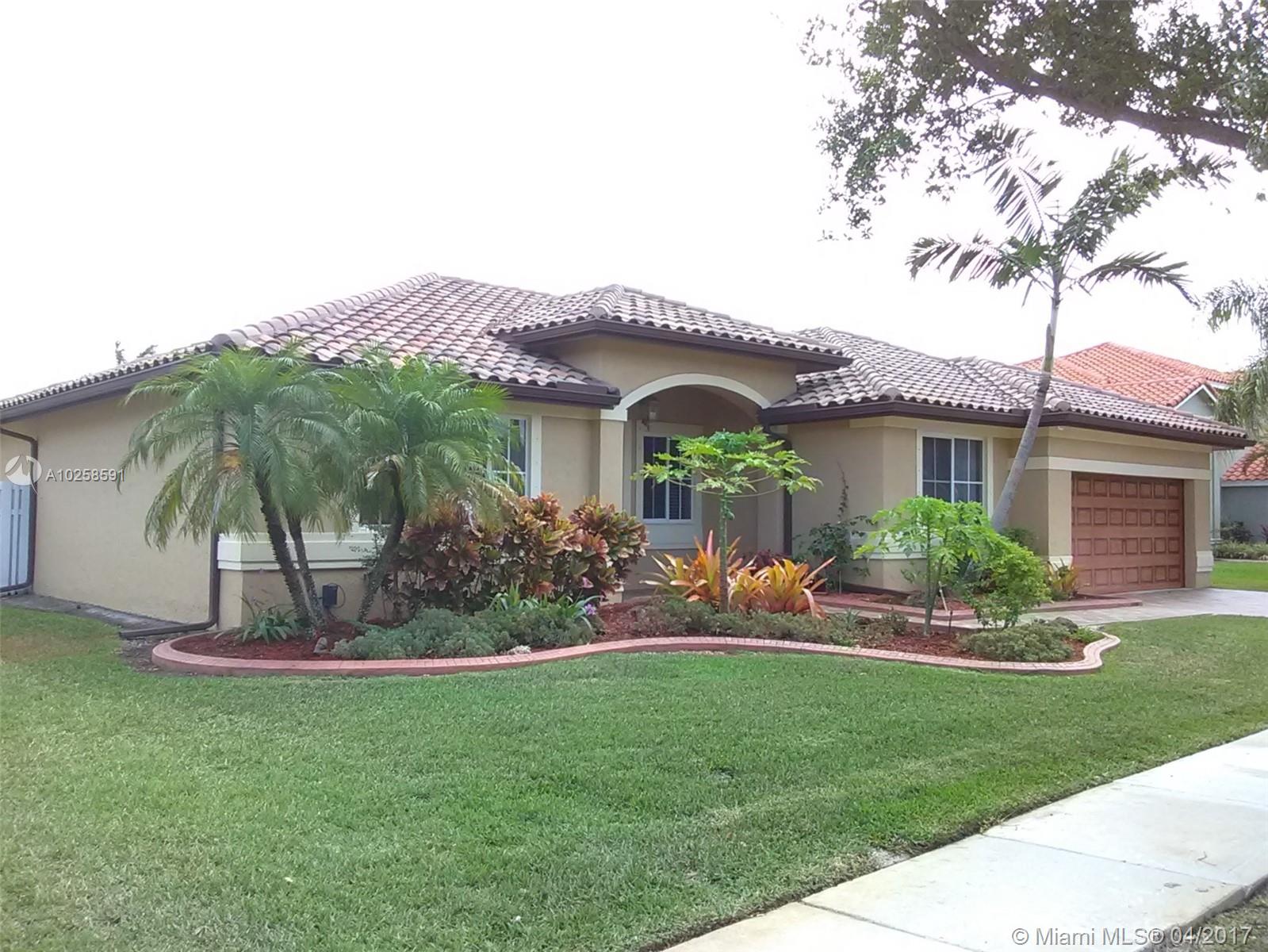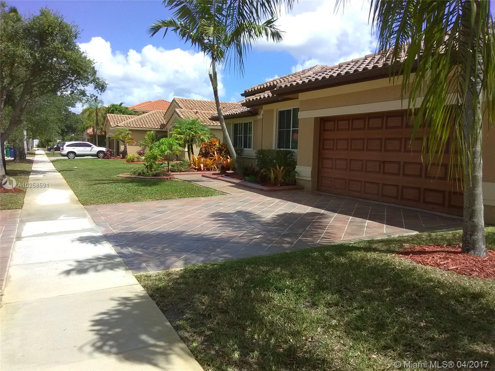 Jewel of property located in the most desire neighborhood of Miramar. Completely renovated & immaculate 3/2 + DEN, 1 story house. 2017: new granite counter top.2016: new 4 tons A/C ,new interior painting, new laminated floors and new tiles in living area.2015: new SS kitchen appliances.2011:new S tile roof, new rain gutters,new shellock artist pavers,new exterior painting.2008:New freedom form salt pool 18x30. Crown molding-fully framed.Grand vaulted ceiling in foyer and family, master and cabana bath completely remodeled,travertine floors, large high efficiency washer and dryer, electric 2014: tankless water heater.internal circuit sound system.Complete hurricane panel 2012:Professional finishing on garage and doors.Ceiling fans in all rooms. Excellent A+ school. Low maintenance!