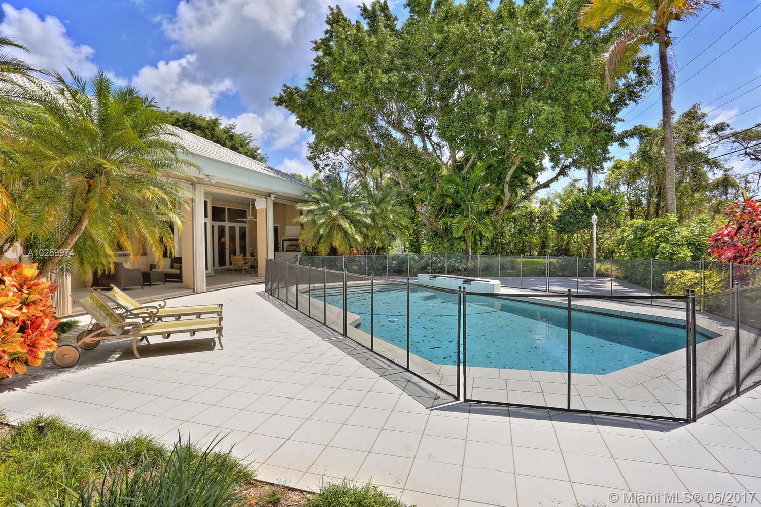 Gated Builder’s Acre. Pinecrest Elementary. Light & Bright, high ceilings, tile & wood floors, Formal LR w/wet bar, Formal DR, Family room next to proper “closed” kitchen w/walk-in pantry & breakfast nook overlooking roofed patio w/built-in BBQ &free-form pool. Master bedroom suite with His & Her walk-in closets and private office+1BR and en-suite bath on one side and 2BR w/common bath+1BR with en-suite cabana bath on other side. Powder Room. Indoor laundry room, lots of storage, side-entry 2-C garage, plenty of parking, beautiful landscaping, hurricane protection.