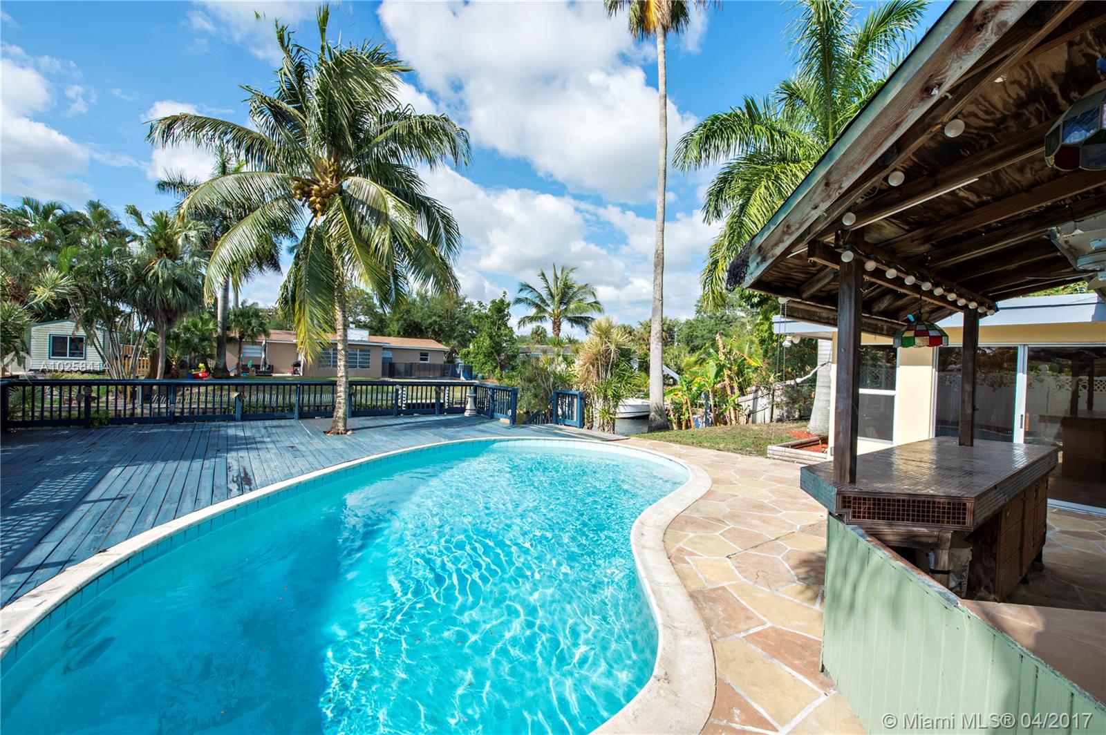 Plantation Isles, Ocean Access Home!! 3 Bedroom, 2 Bath, Pool home gives you Ocean Access directly from your backyard. Home has an updated kitchen with a professional gas range. Bonus room off of the kitchen leads to an attached laundry room. There is a outdoor Tiki bar overlooking the large Wood Deck and Pool. 75 feet of Seawall with dock and davits (need repair), for your boat! Paved area on side yard to park a small RV/Boat. Located on a dead-end street in a quiet neighborhood. Walking distance to Happy Tails dog park and nearby Heritage Park. Close to restaurants, shopping, airport, beaches and all major expressways.