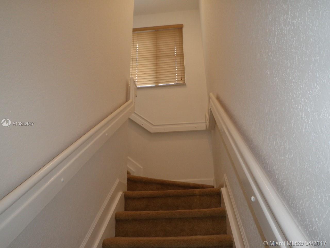 THIS ONE IS A MUST SEE! VERY WELL KEPT 4/3 TOWNHOUSE (END UNIT) WITH LOTS OF NATURAL LIGHT. READY TO MOVE IN HOME FEATURES TILES 1ST FLOOR AND CARPET UPSTAIRS. LARGE OPEN PATIO FOR ENTERTAINING. NO NEIGHBORS BEHIND UNIT. OPEN GREEN SPACE WITH JOGGING/WALKING TRAIL. THE PROPERTY IS IN EXCELLENT CONDITION AND MOVE IN READY. FRESHLY PAINTED AND HURRICANE SHUTTERS. CENTRALLY LOCATED NEAR MIAMI LAKES, MAIN STREET, I-75, PALMETTO EXPRESSWAY AND TURNPIKE. GREAT INVESTMENT OPPORTUNITY.