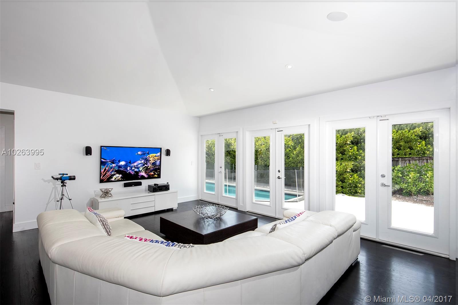 Incredible 5 bed+maids/4.5 bath, approx. 3574sf, remodeled family home in desirable Bay Harbor Islands. Enjoy expansive living spaces, unique high ceilings w/a contemporary vibe. Dramatic dark wood floors, contrasting white walls and beautiful French doors leading out to the salt water pool & patio. Huge master suite features 2 walk-in closets & generous spa-like master bath w/Jacuzzi. Perfect layout for a large family with a separate children's area off of the great room. Home features brand new impact windows & doors, elegant new baths, separate laundry, new plumbing, electrical, (2) zone AC, exterior/interior paint, pavers & landscaping. Enjoy the charm of Bay Harbor Islands' small town feel. Walk to A+ schools, world class shopping, restaurants, beautiful beaches & places of worship.