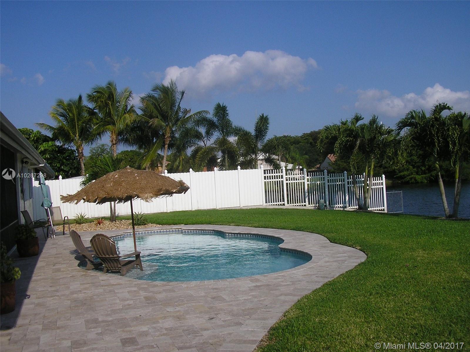 Welcome Home to this highly sought after 4 bedroom triple split design with 3 full bathrooms plus a half bath for guests. Vaulted ceilings and open floor plan make this home really spacious and perfect for entertaining and enjoying the tropical setting and view of waterway and swimming pool. Many recent upgrades throughout , Pool was installed in 2015, one 3 ton AC , appliances, bathroom fixtures and all interior doors are updated. Kept immaculate inside and professional landscaping is manicured outside. Washer and Dryer do not convey. Has accordion shutters and storm rated garage door. So close to easily commute.