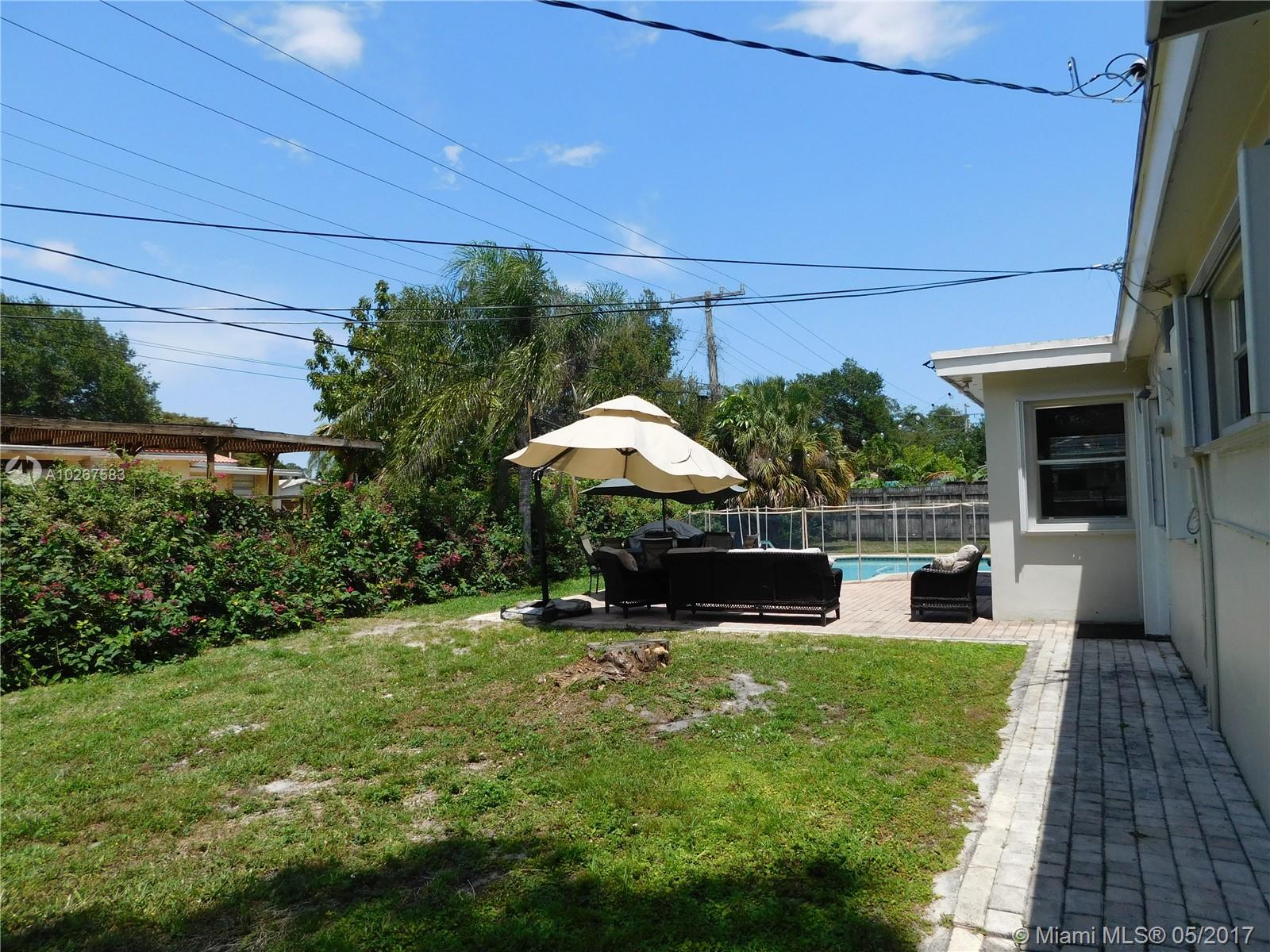 Spacious, Open floor plan. Views of this refreshing Pool home from the kitchen and the living area. This 4 bedroom, 2 bath home features an updated Country kitchen with tiled countertops & stainless steel appliances, new toilets in both bathrooms, accordion hurricane shutters and oversized sliding impact doors, and impact windows. Double lot with lush landscaping, circular driveway and plenty of parking. Centrally located and easy commute north and south with close proximity to the Florida Turnpike. Close to shopping, schools, parks and Hollywood Beach. Don't miss out on seeing this property.
