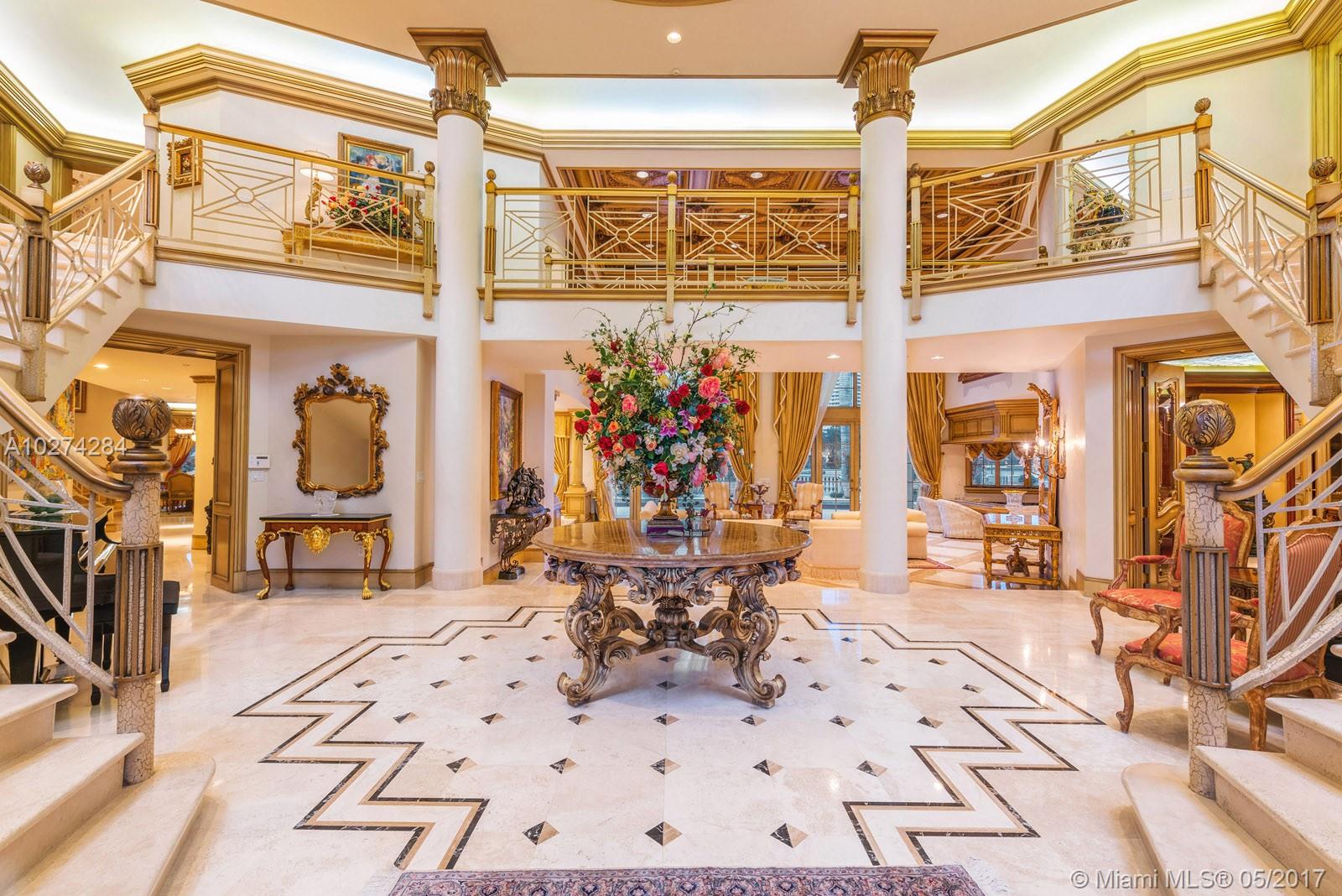 Magnificent 9,100 sqft Golden Beach mansion sitting upon 200 ft of direct intracoastal waterfront. Located on the coveted South Island, this extravagant home boasts massive ceiling height, classical double staircases, and tremendous size rooms throughout.