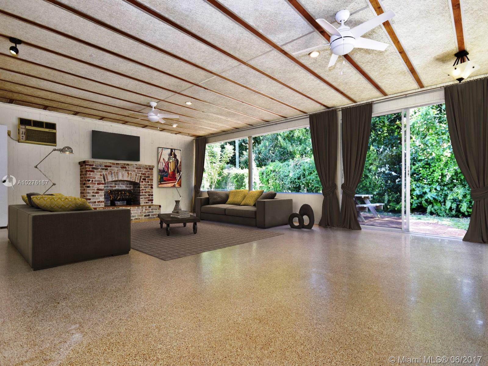 GRAND MIAMI SHORES STYLE RANCH on a 13,000+ SF corner lot in Miami Shores. This charming 2,715 SF home features a brand new roof, an amazing layout, 3 bedrooms, 2.5 bathrooms, 2 expansive light filled family rooms, wood & terrazzo floors, a garage with storage, and recently updated appliances. Fabulous living areas! The main oversized Florida has a beautiful chimney & walls of glass overlooking the backyard. Perfectly located on a quiet, tree-lined Miami Shores street.