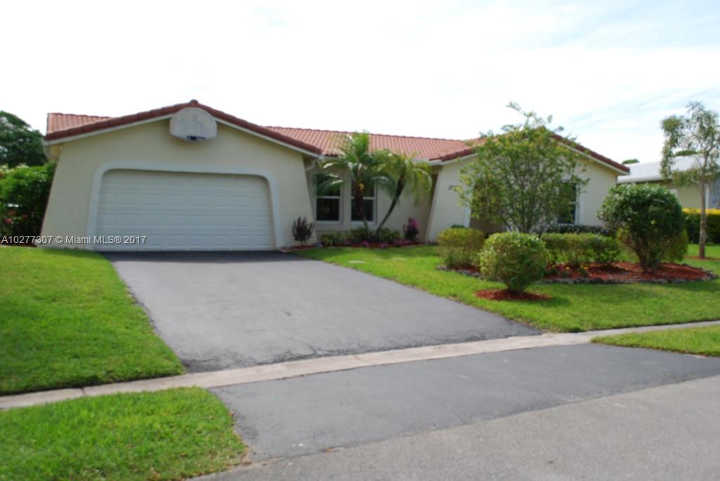 Impeccably kept pool home on HUGE STUNNING FENCED LAKEFRONT LOT in the quiet family-oriented Westchester community! The attractive glass-front entry door opens to a view of the SPACIOUS OPEN LIVING AREA and beyond it to the pool, interconnecting lakes, and 3 Friends Park. Updated eat-in oak kitchen with BRAND NEW STAINLESS STEEL APPLIANCES. IMPACT WINDOWS. S-tile roof replaced in 2006; flat roof in 2014. NEW 5 TON A/C in 2014. Formal dining room. Split floor plan with three large secondary bedrooms. Three walk-in closets. Two Cabana baths. Utility/storage room with 2014 washer/dryer. Work bench in garage. No HOA maintenance fees. Enjoy fishing or kayaking from your own backyard. Near Sawgrass Expressway & Sample Rd.
