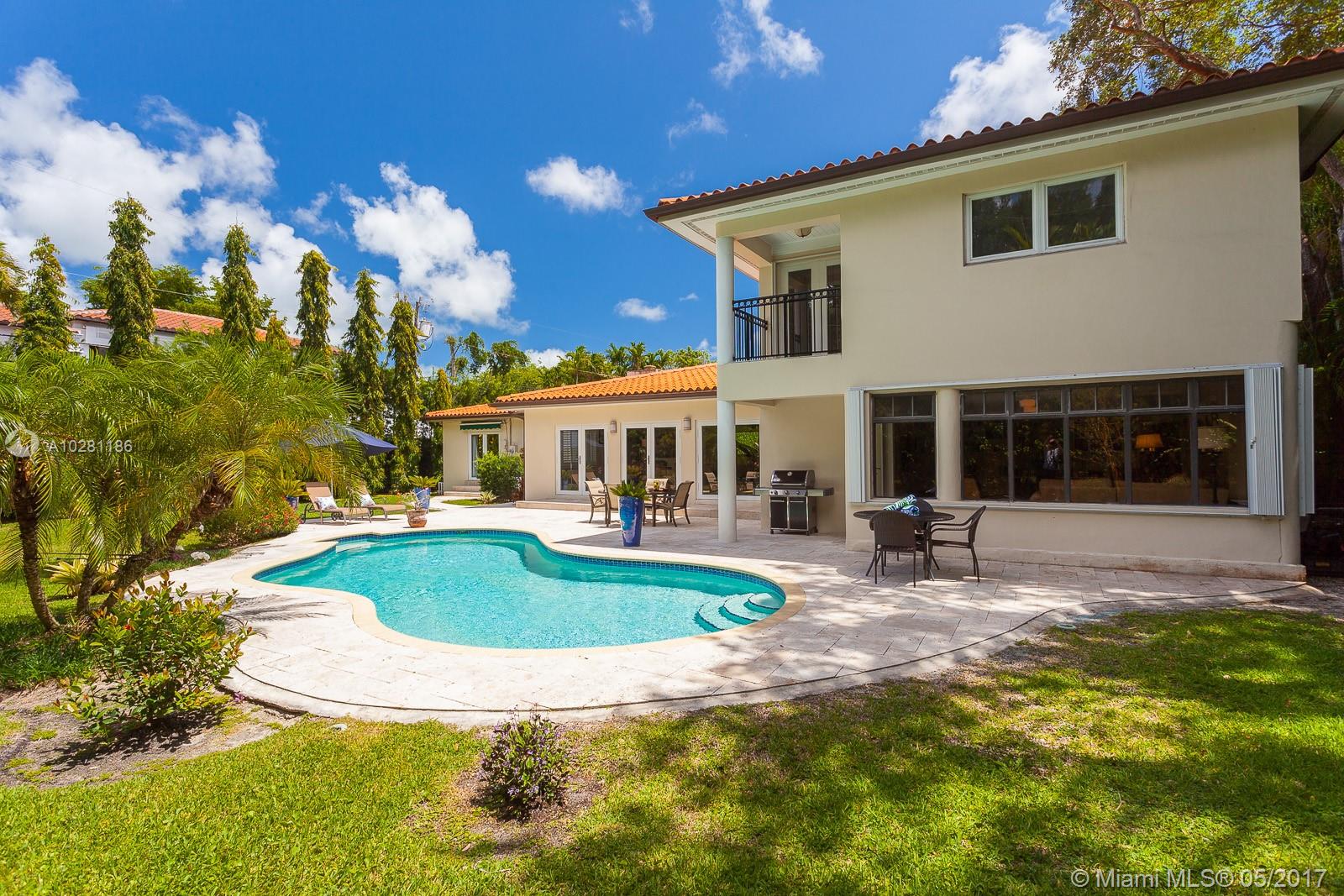 Live in Coral Gables famed Platinum Triangle! This gorgeous, updated 6-bedroom home (Master + 1BD ensuite upstairs & 4 BD/3BA down), features a stunning eat-in kitchen w/ butlers pantry, living dining & family rooms that open to an inviting pool & garden (13,747 sq ft lot), built-ins, ample closets, laundry room, stone & hardwood floors & impact glass & shutters. Truly a treasure, this home will be the center for many happy gatherings with family & friends. A Very Special home.