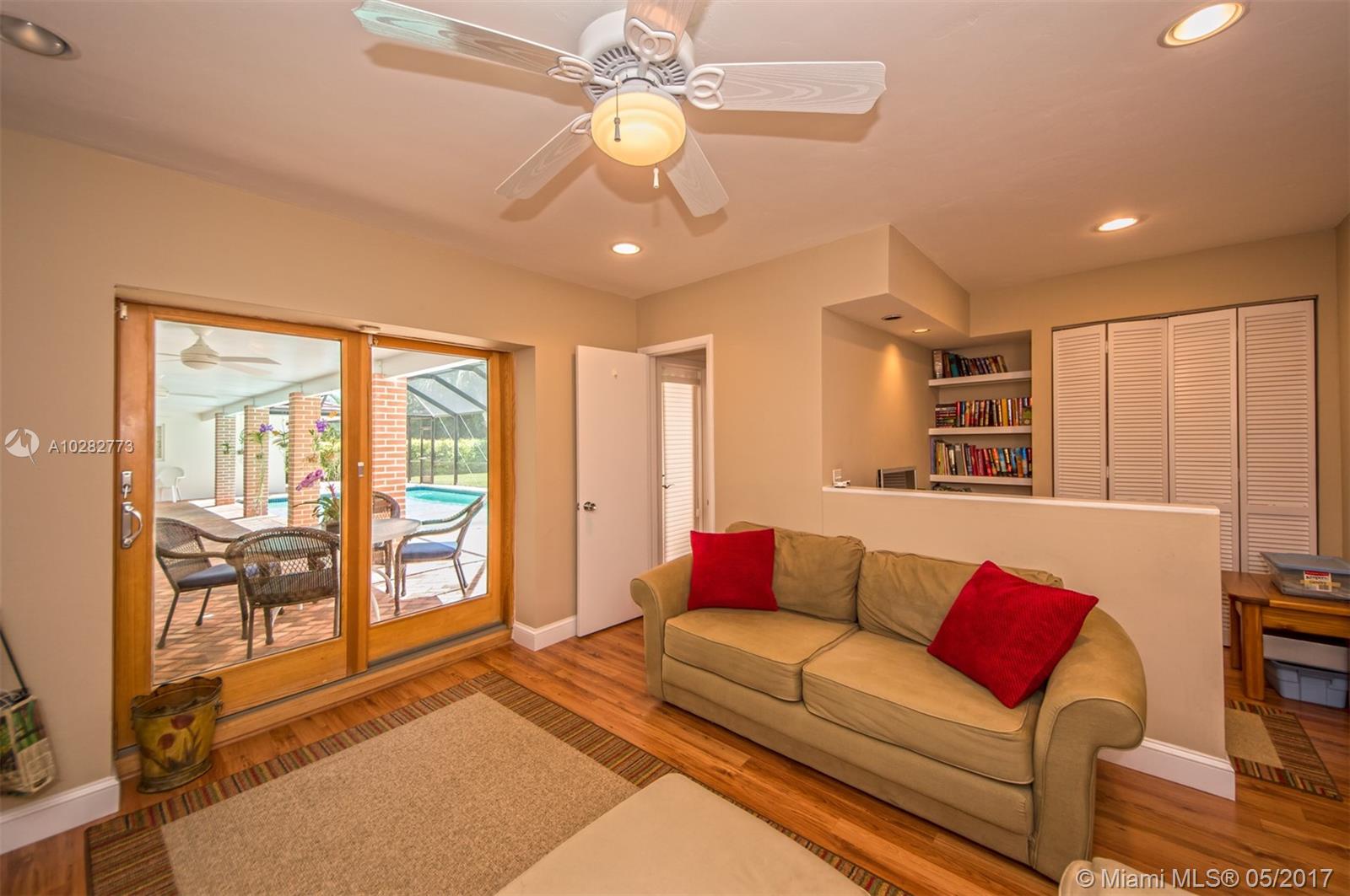 Palmetto Island Area! Beautifully maintained and updated Pinecrest home on a terrific street. Excellent floor plan featuring 4 bedrooms and 2 baths on one side and an additional bedroom/bath off the kitchen/family area-perfect for a guest room or home office. Open and large living room with wood floors and fireplace wall. Kitchen with wood stainless and granite. Family room with built-in entertainment cabinet. House opens to beautiful screened pool/pavered patio and private backyard. Fabulous neighborhood. All 3 Palmetto Schools! Adj sqft: 3,186, Living Area sqft: 3,111, total sqft: 3,799.