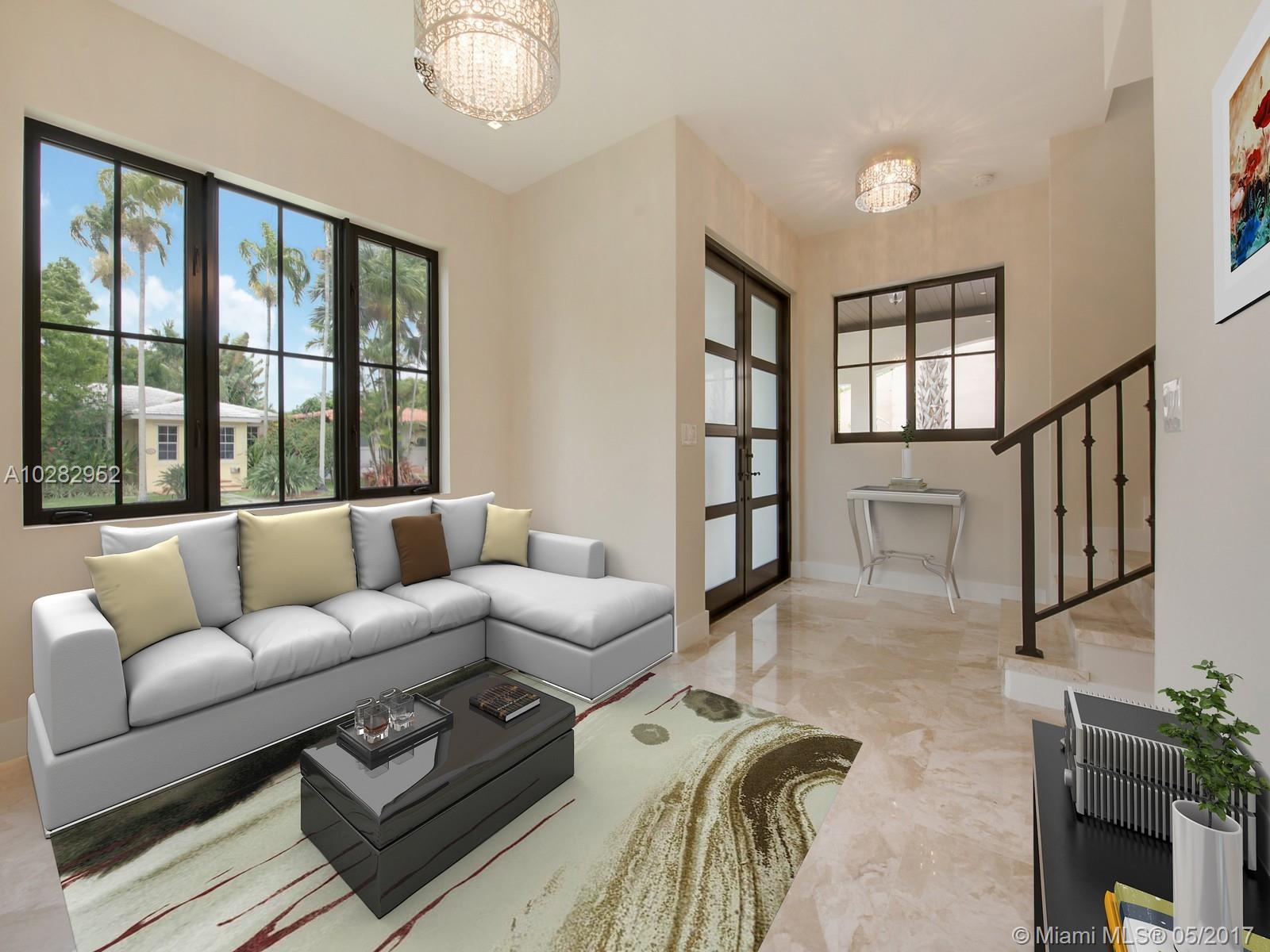 Brand new custom home in the heart of Coral Gables. Featuring 2 story open floor plan architecture with top of the line finishes: Large hand selected marble floors, custom cabinetry in the kit, bathrooms & closets. Open kitchen w/Quartz counter tops, top designer Sub-Zero & Thermador appliances. Top notch security w/high impact CGI windows, doors & security system with 8 HD cameras. Home offers other qualities. Located in great family neighborhood, close to world class dining, shopping & great schools.