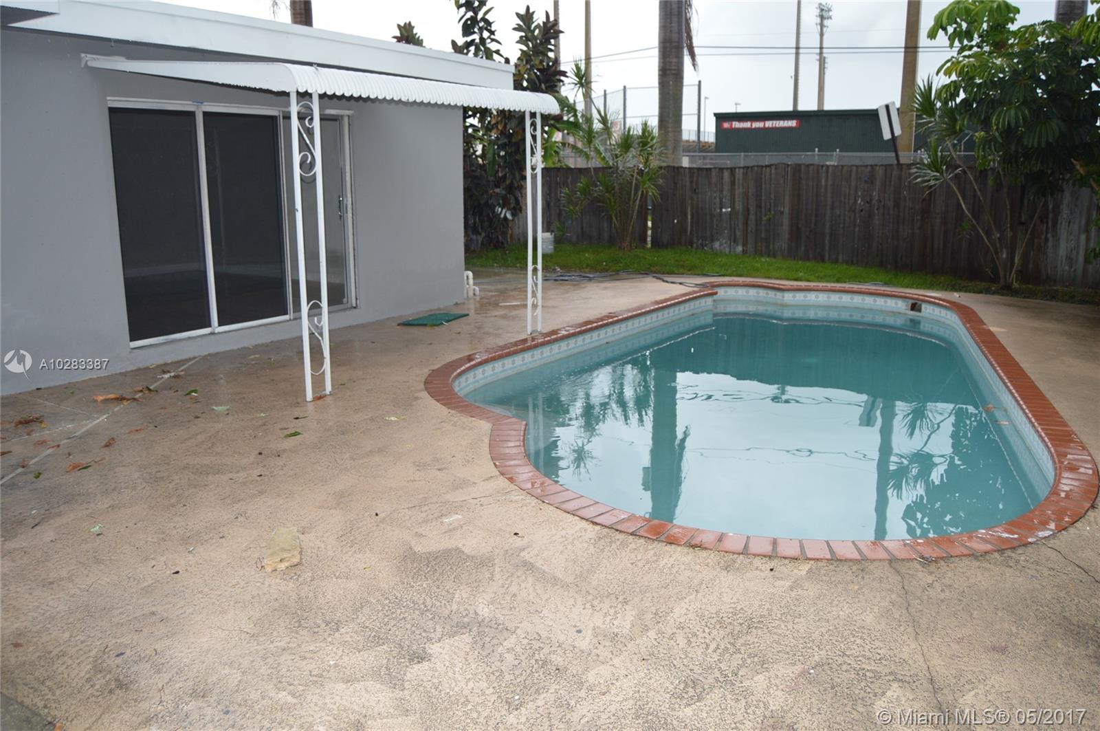 Beautiful remodeled pool home in Hollywood Lakes area. 3Bed/2Bath HAS NEW ROOF, Kitchen has NEW stainless steel appliances, wood cabinets with granite. Fantastic open floor plan with all tile flooring in the living area and kitchen and laminated wood flooring in the livingroom. Backyard features a pool with a great space for entertaining. 10min bike ride to the beach. A must see, hot area wont last.