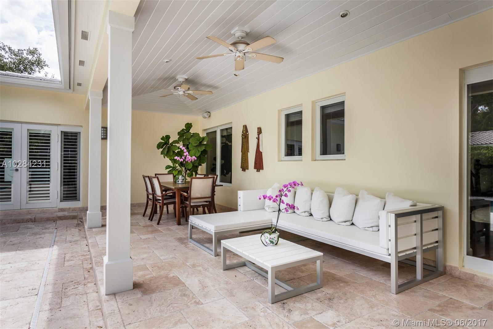 Located in Coral Gables near Old Cutler Road, this 4 BR/4 BA home has been beautifully renovated. French doors and spacious layout contribute to the bright nature of the home. The gourmet Mia Cucina kitchen features Scavolini cabinetry, mosaic tile backsplash, porcelain tile floors and top-of-the-line appliances. Gorgeous wood floors are used throughout the homes living spaces and bedrooms. In addition to a living, dining and family room, the home also has an office. The master suite has his-and-hers walk-in closets with built-ins and French doors that open to the backyard. Great for entertaining, the wood paneled covered patio with ceiling fans and speakers overlooks the heated saltwater pool. 4th bedroom has been converted to an office.
