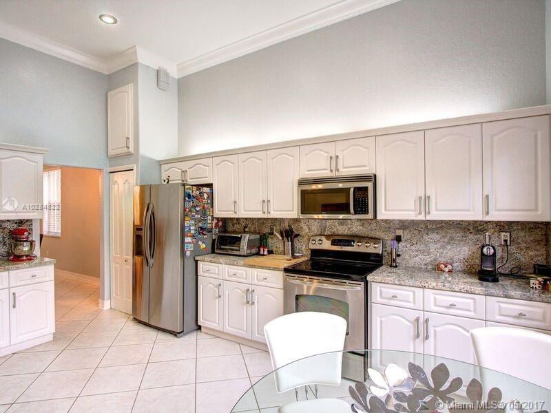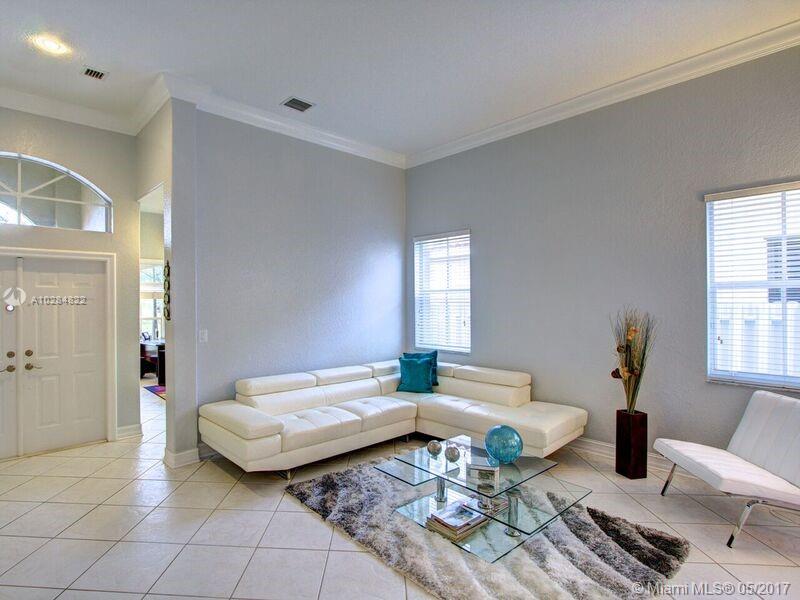 Beautiful cozy 1 story home. This home offers a great open floor plan with high ceilings. 5 bedrooms, 3 full bathrooms, 3 car garage. Lap pool with water cascade. Renovated kitchen with newer appliances. Master bedroom with custom built walk-in closets, new High Efficency A/C. All walls have mid outlets for flat screen TVs. Hurricane shutters. Home is located one light away from the highway. Walking distance from schools...