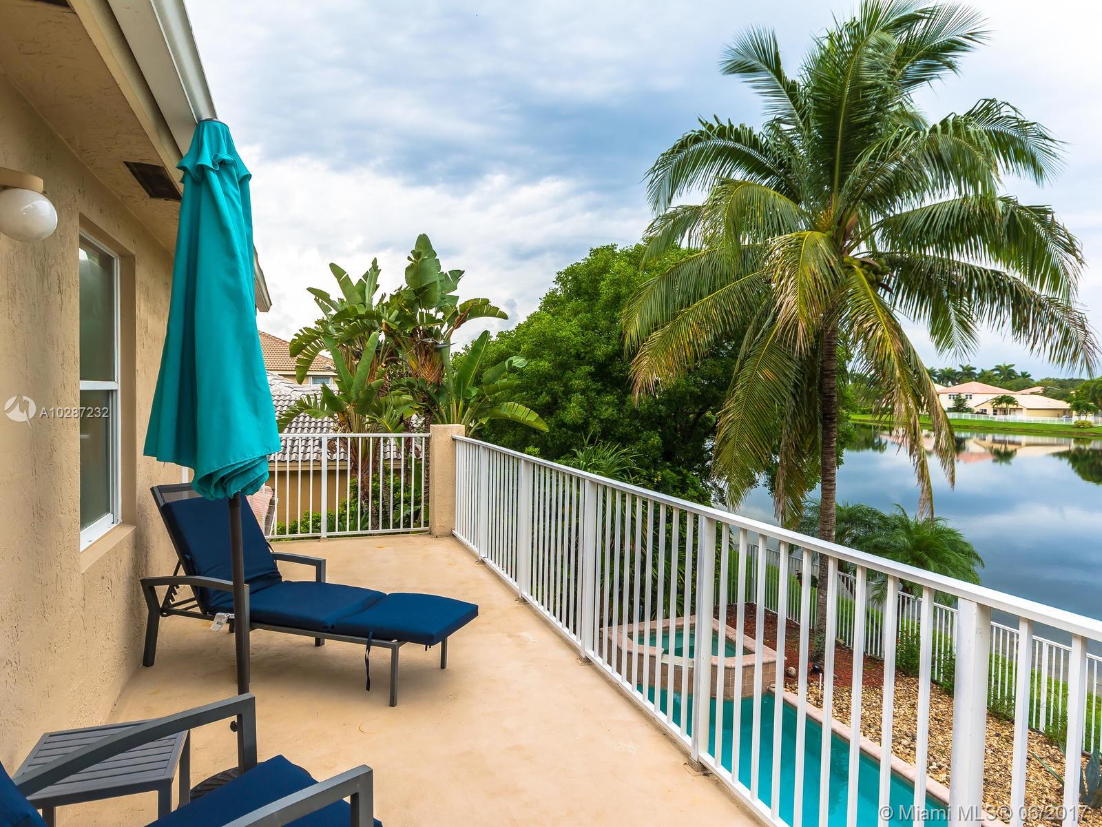 Stately waterfront/pool/spa home, expansive covered patio & balcony. Prestigious Resort/Guard gated community of Pembroke Isles. 1st floor bdrm/office/playroom, full cabana bath/ shower & upgrade vanity, bath fixtures. Upgraded flooring - designer tile on first & wood laminate floors on stairs & second. Oversized master suite with two full size walk-in closets and luxury oversized master bathroom. Master features added sitting room "6th bedroom" plus balcony overlooking tropical landscape, lake & pool areas. Hallway computer work station is an added bonus. Gourmet kitchen, granite counters, stainless steel appliances are a bonus. HOA includes grass cutting /sprinklers/cable/ alarm/full clubhouse with fitness center, aerobics, 3 pools, 4 tennis courts, full basketball, soccer field, bball.