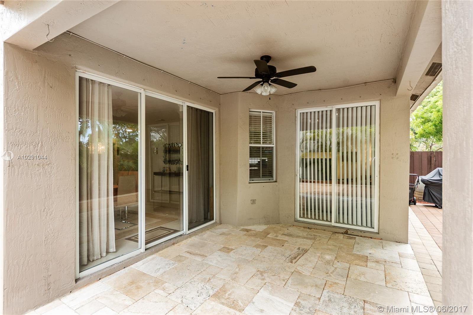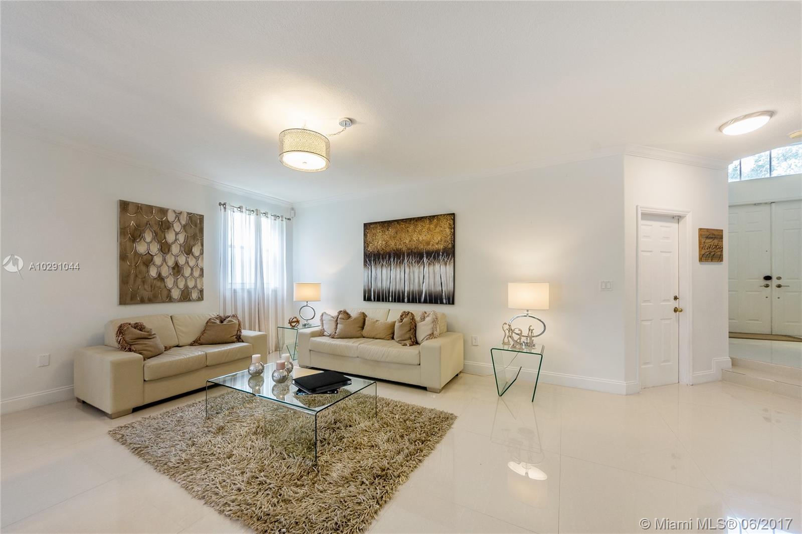 Mediterranean residence in Biarritz guard gate community of Doral, extensively remodeled= everything is new! Porcelain & wood floors, new doors, new stainless steel appliances, new kitchen & bathrooms, new central a/c. Freshly painted in/out, new glass stair railings, master suite w/ shower & jacuzzi tub. High ceiling, garage split and added children's play room. Low HOA fee $235/month. Includes guard gate 24/7, walled and landscaping