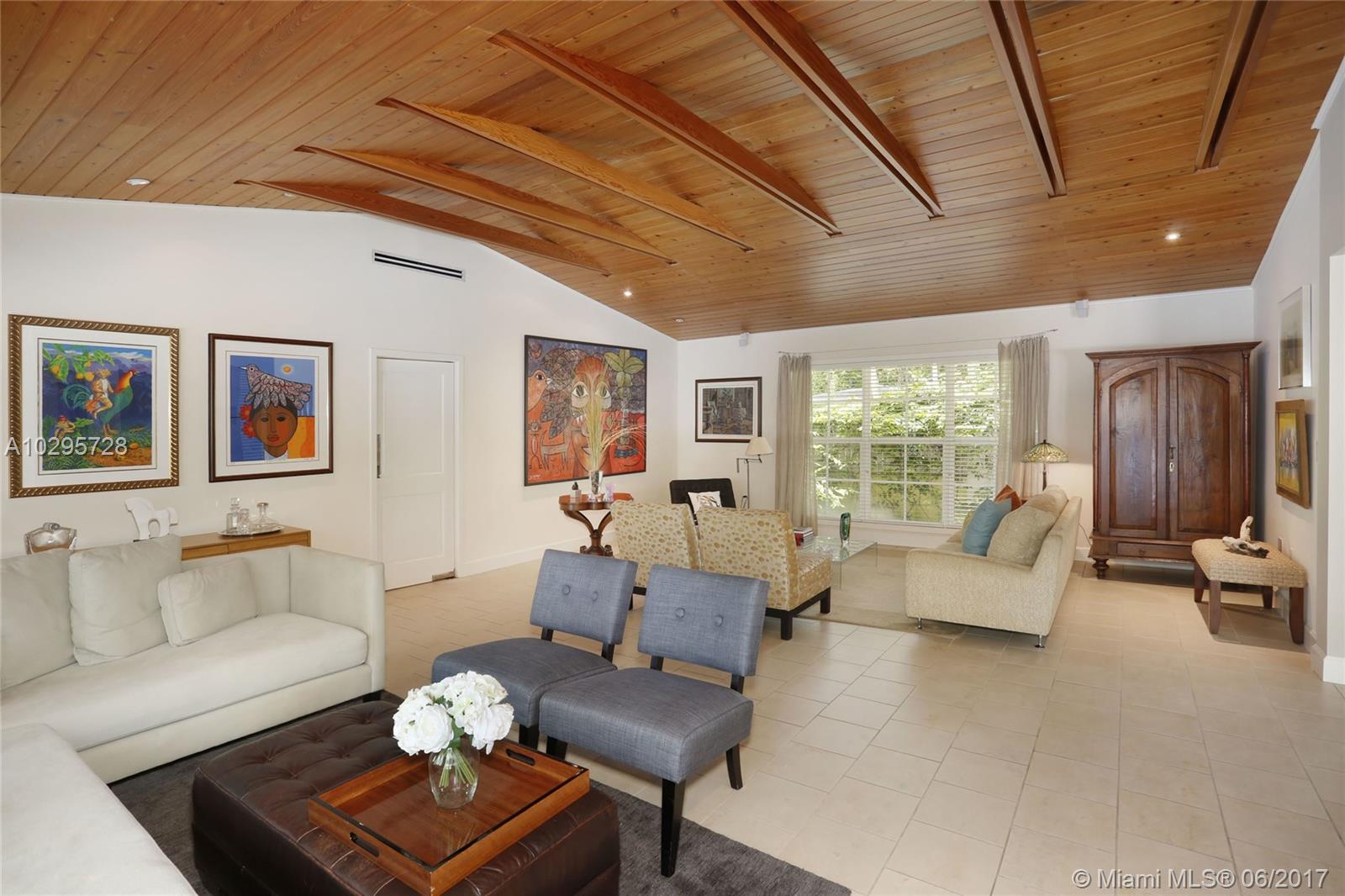 Go ahead and grab a milkshake at Wayside Market as you head to this wonderful North Pinecrest home! Located on a quiet street surrounded by lovely, updated houses, this one is a stunner. Living Area=2,556 sf. The foyer entry leads into a spacious living room with vaulted wood ceilings and French doors opening out to the deep covered porch that is truly another living space. Beautifully updated, the open kitchen looks over the dining and family rooms. This 4 bedroom/3 bathroom home has a split floorplan perfect for guests. The master features soaring ceilings, large walk-in closet, and recently renovated bathroom. Impact glass windows and French doors, laundry and storage rooms, 14,985 SF lot, sparkling pool, metal roof, and Pinecrest Elementary…this house has it all!