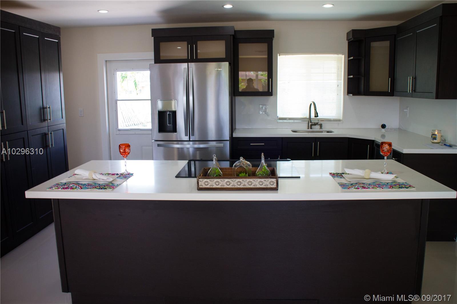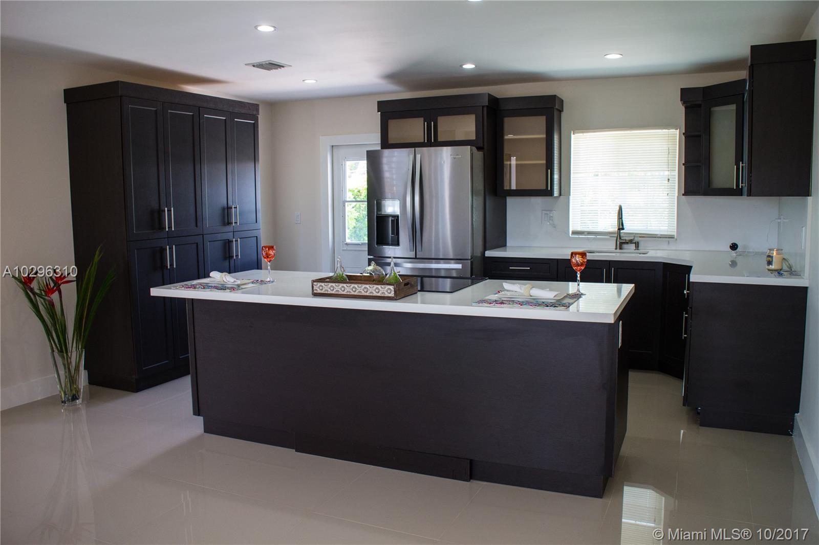 New updated 3/2 with amazing porcelain tile throughout the home. Open kitchen w/Island, Quartz counters and w/self-closing cabinet doors, stainless steel appliances and Impact Windows. Gorgeous baths with Quarts countertop. Master suite has an additional huge office/sitting/playroom with an enjoyable view to the outside. Beautiful new landscaping all around and perfect backyard with a pool to enjoy the beautiful summer days. Close to beach, schools and shops.