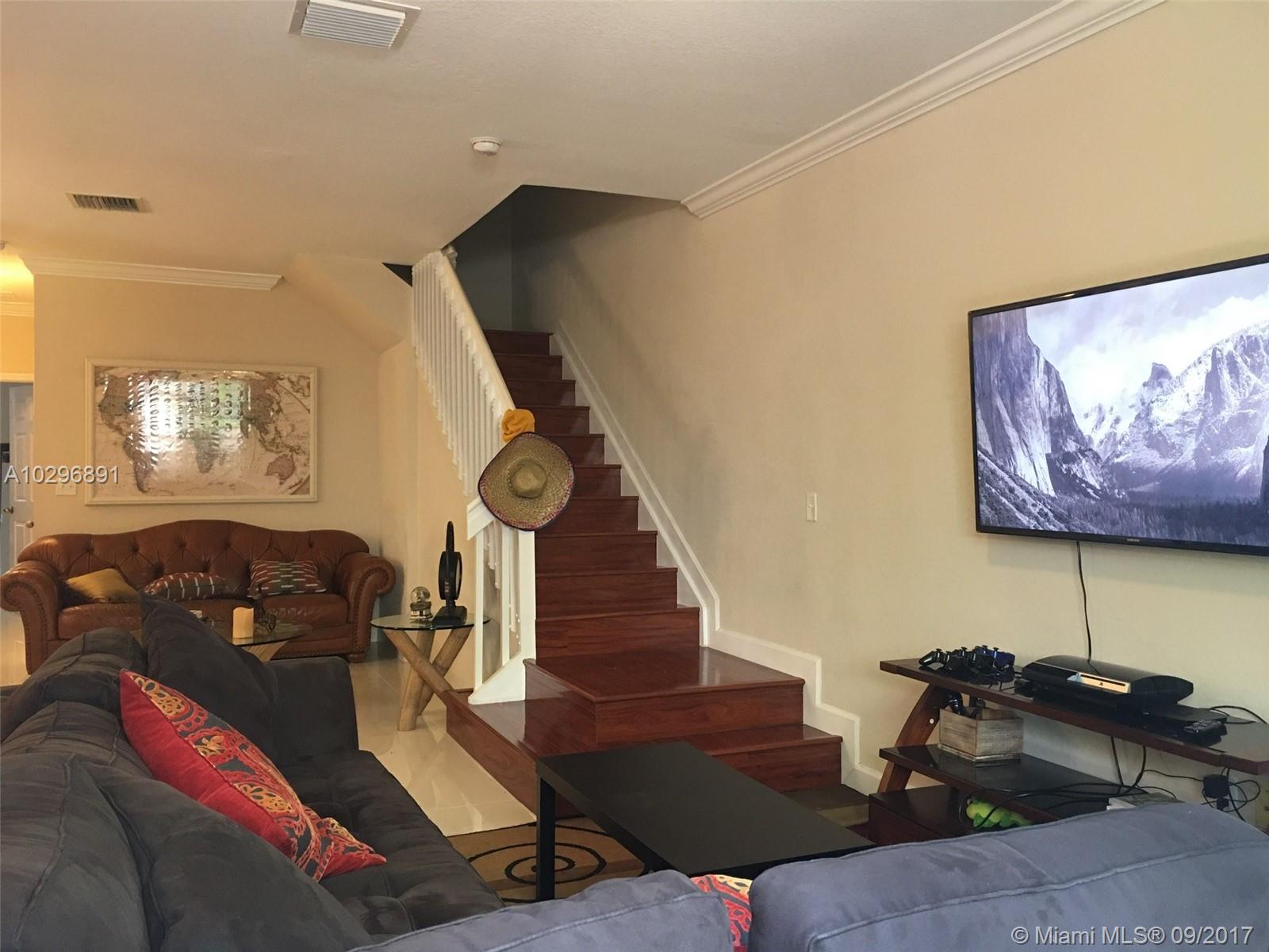 AMAZING BEAUTIFUL CORNER TOWNHOUSE FEATURES: 1 BEDROOM DOWNSTAIRS WITH FULL BATHROOM AND 3 BEDROOMS 2 BATHROOMS UPSTAIRS. BRIGHT GORGEOUS KITCHEN WITH STAINLESS STEEL APPLIANCES AND GRANITE COUNTER TOPS, CERAMIC FLOORS DOWNSTAIRS AND ENGINEERED WOOD UPSTAIRS. ONE CAR GARAGE WITH AUTOMATIC DOOR OPENER. FENCED COMMUNITY WITH NICE CLUB HOUSE, POOL AND CABANA BATHS. VERY CLOSE TO EVERYTHING LIKE: SHOPPING, GREAT SCHOOLS, 5 MINUTES TO AVENTURA MALL, 5 MILES TO BEACHES, CASINOS AND MORE.