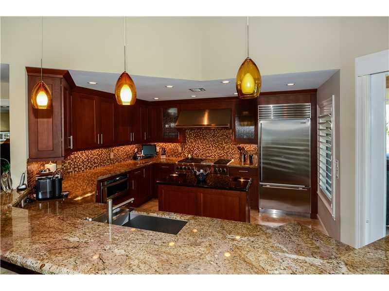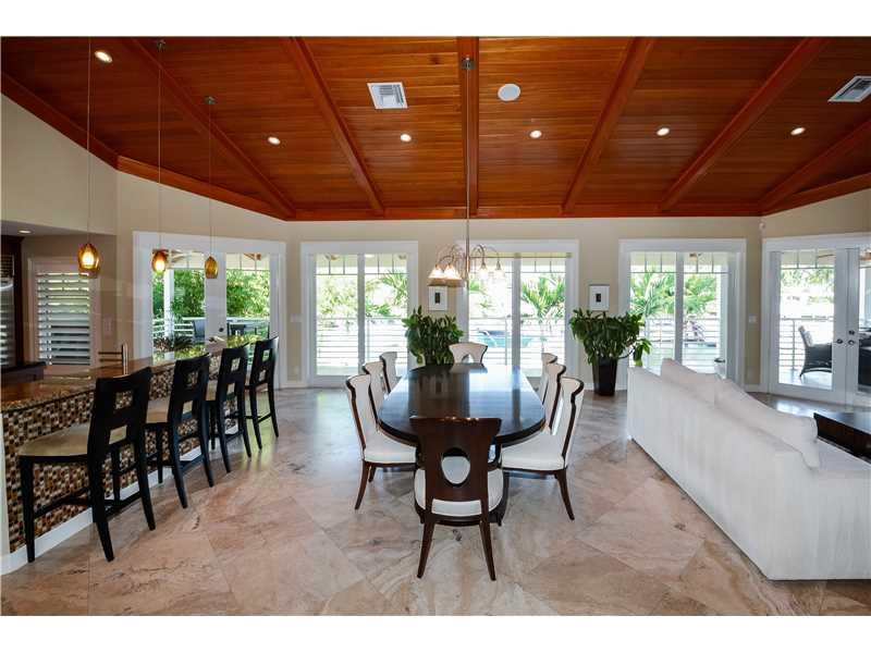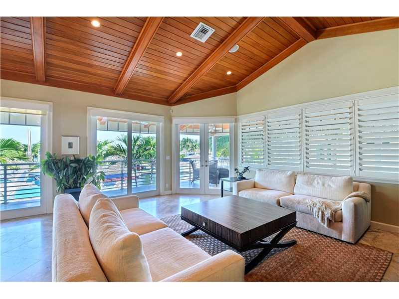 Bright open 2nd floor living space with vaulted cypress wood ceilings, 3 walls of windows overlooking the canal and port waterways. The kitchen gas wolf stove, cooking island and glass block backsplash. Huge master suite with double walk in closets, stone walls in master bath. Wenge wood floors in Bedrooms and Den. Miami Interior Designer Created this space. Elevator. 12+ A/C car garage or personal Toy Box, double garage doors in front and another set out to patio / dock. Custom pool, 80' seawall / dock